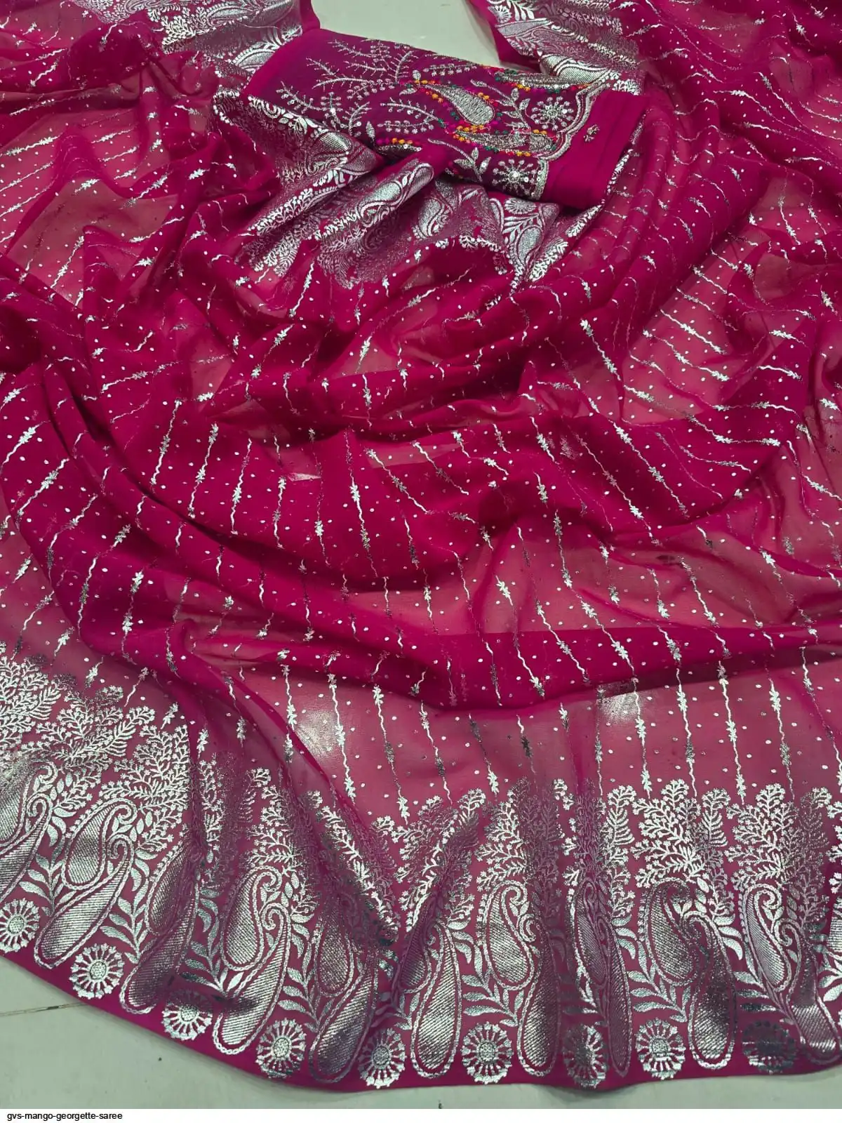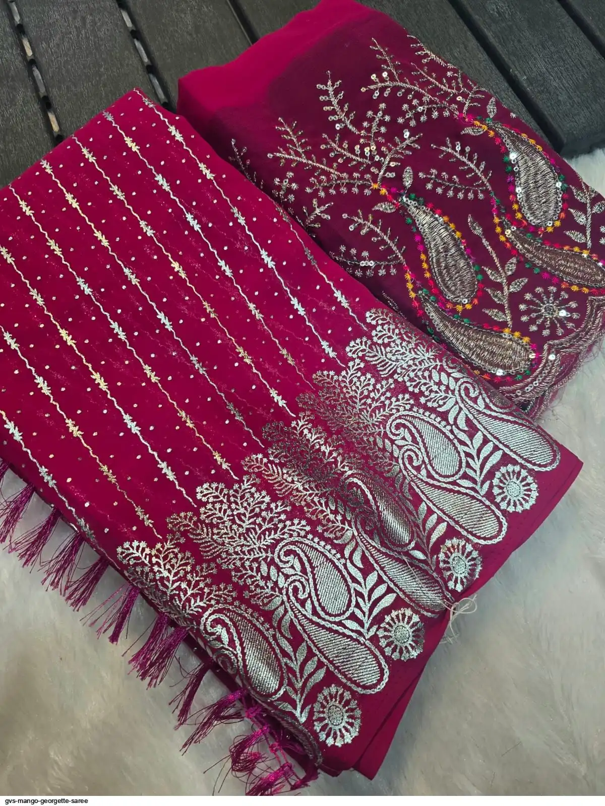 Georgette Saree With Georgette Multi Sequence Embroidery Work Blouse