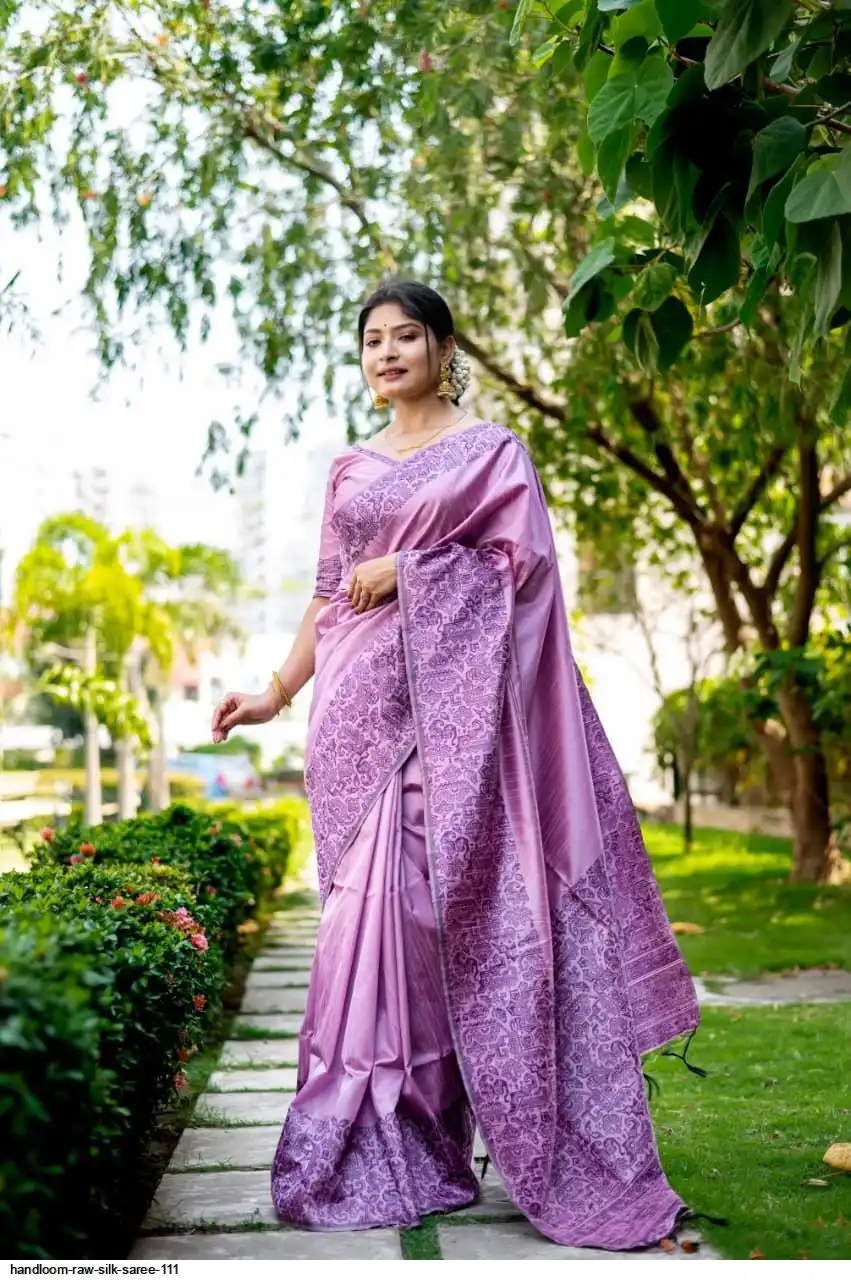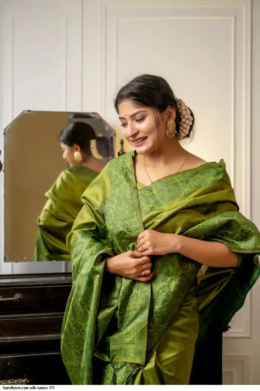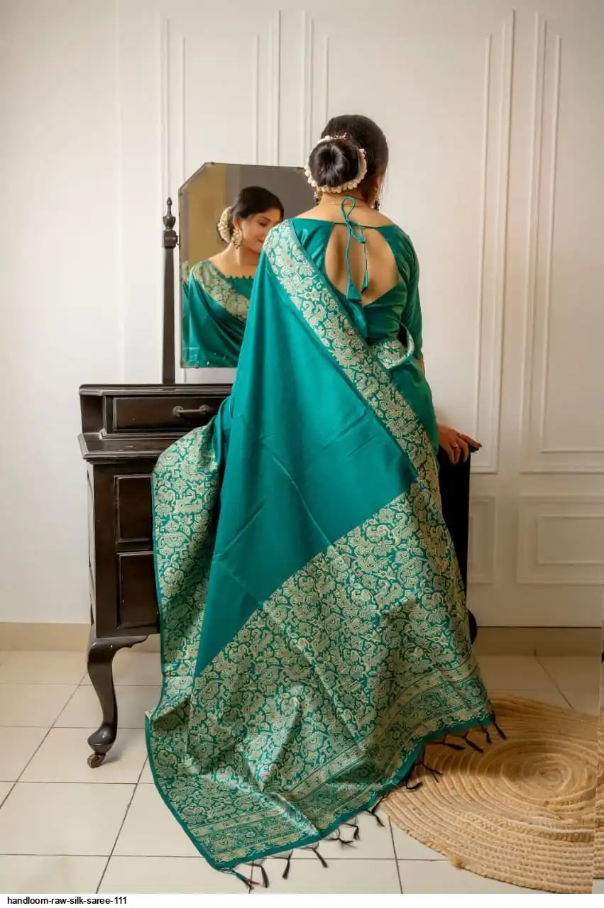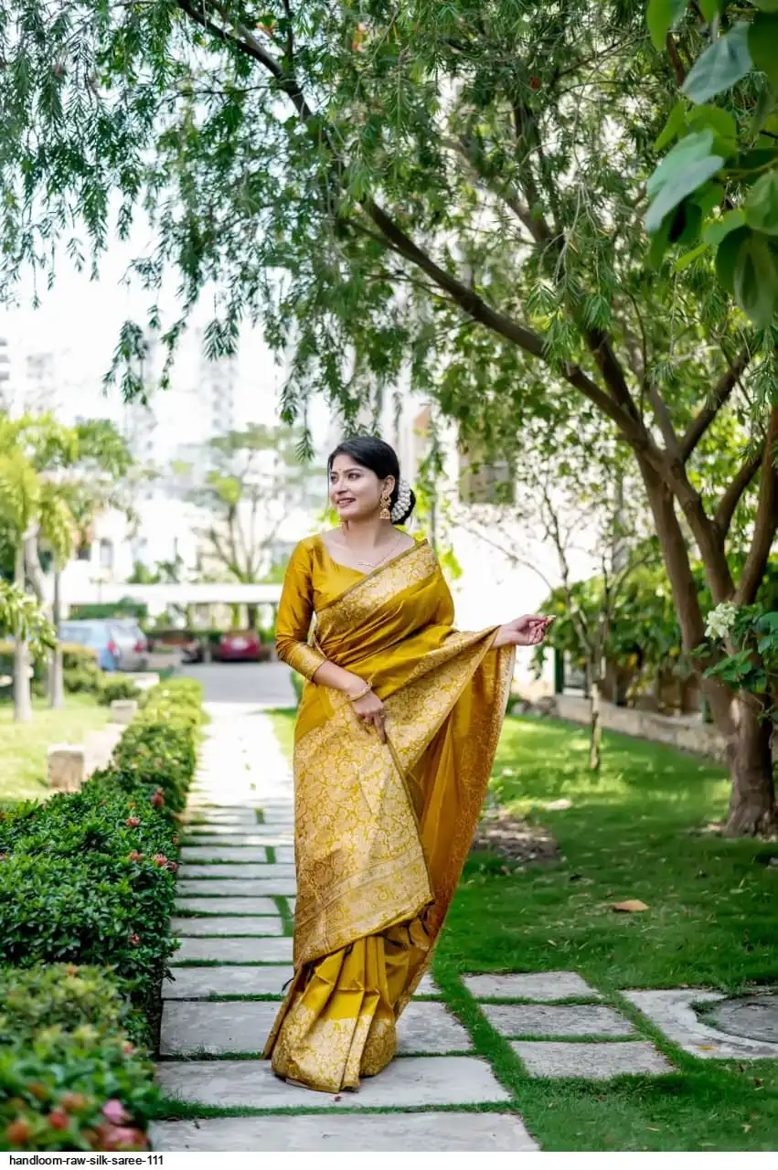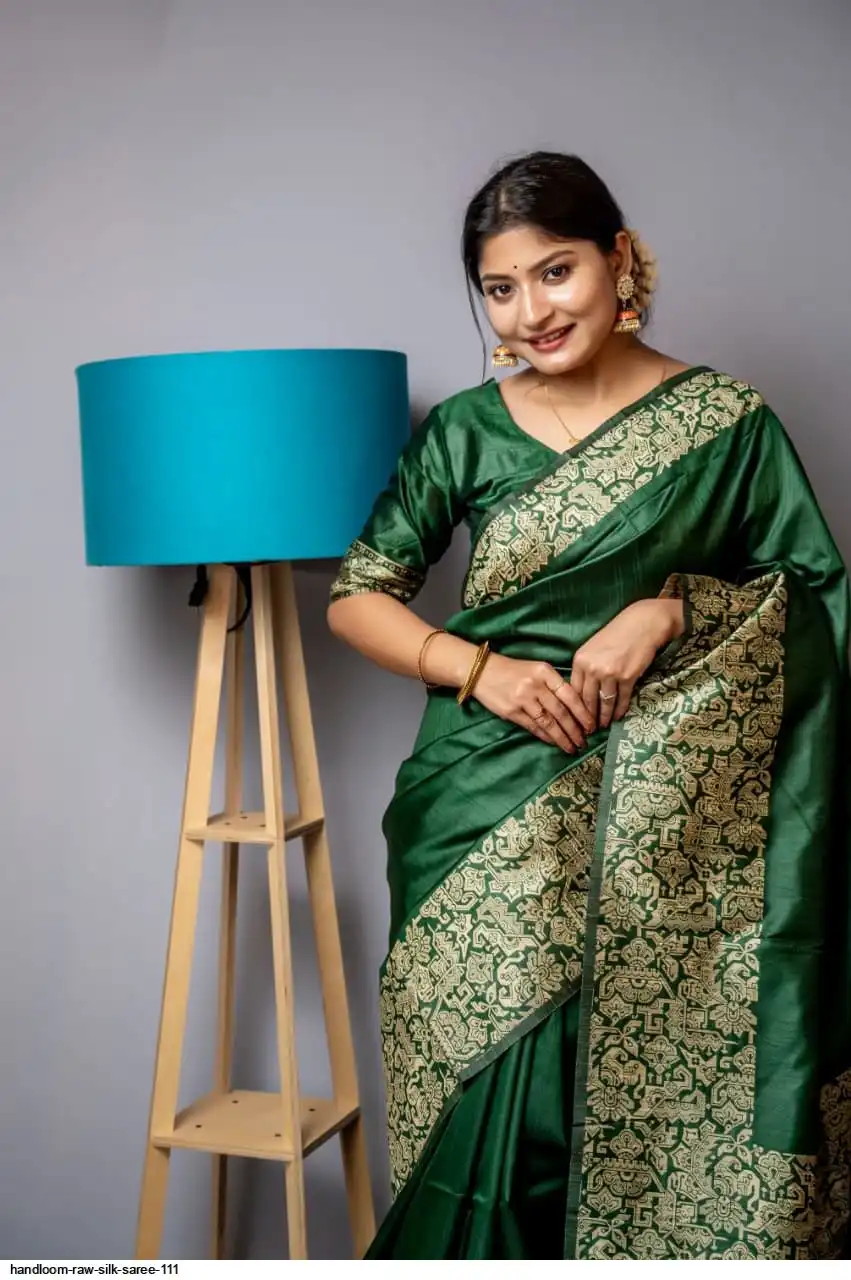HANDLOOM RAW SILK SAREE WITH RICH WEVING PALLU AND RUNNING BLOUSE PIECE