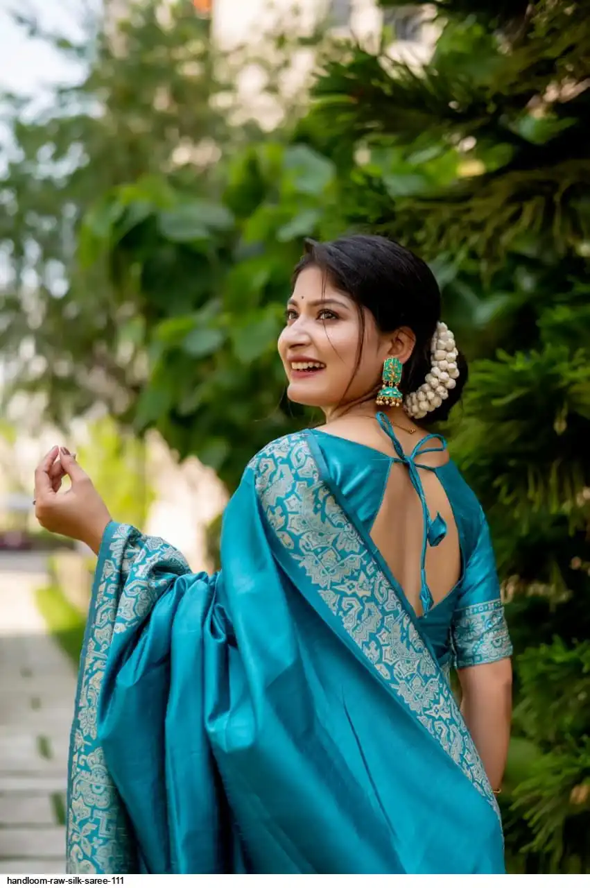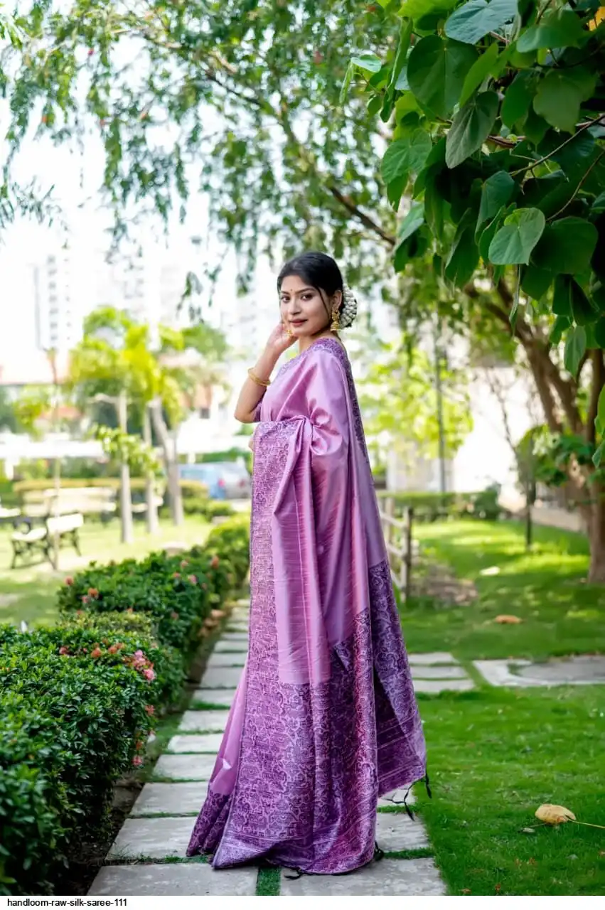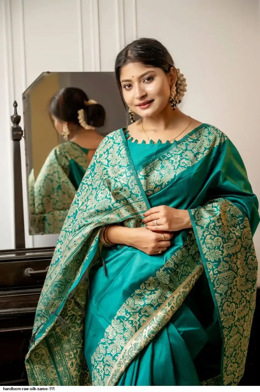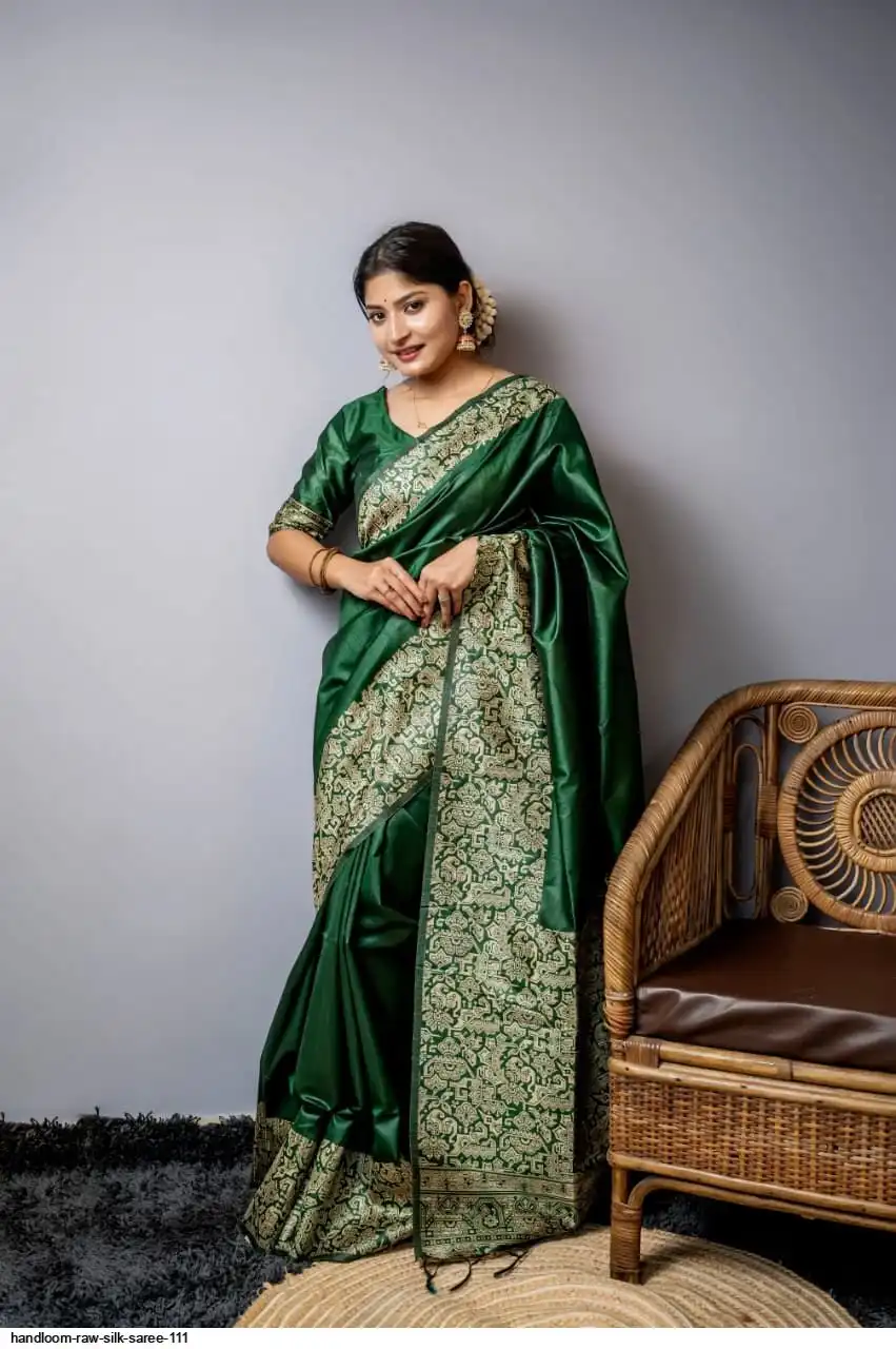 HANDLOOM RAW SILK SAREE WITH RICH WEVING PALLU AND RUNNING BLOUSE PIECE