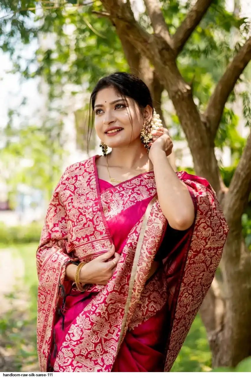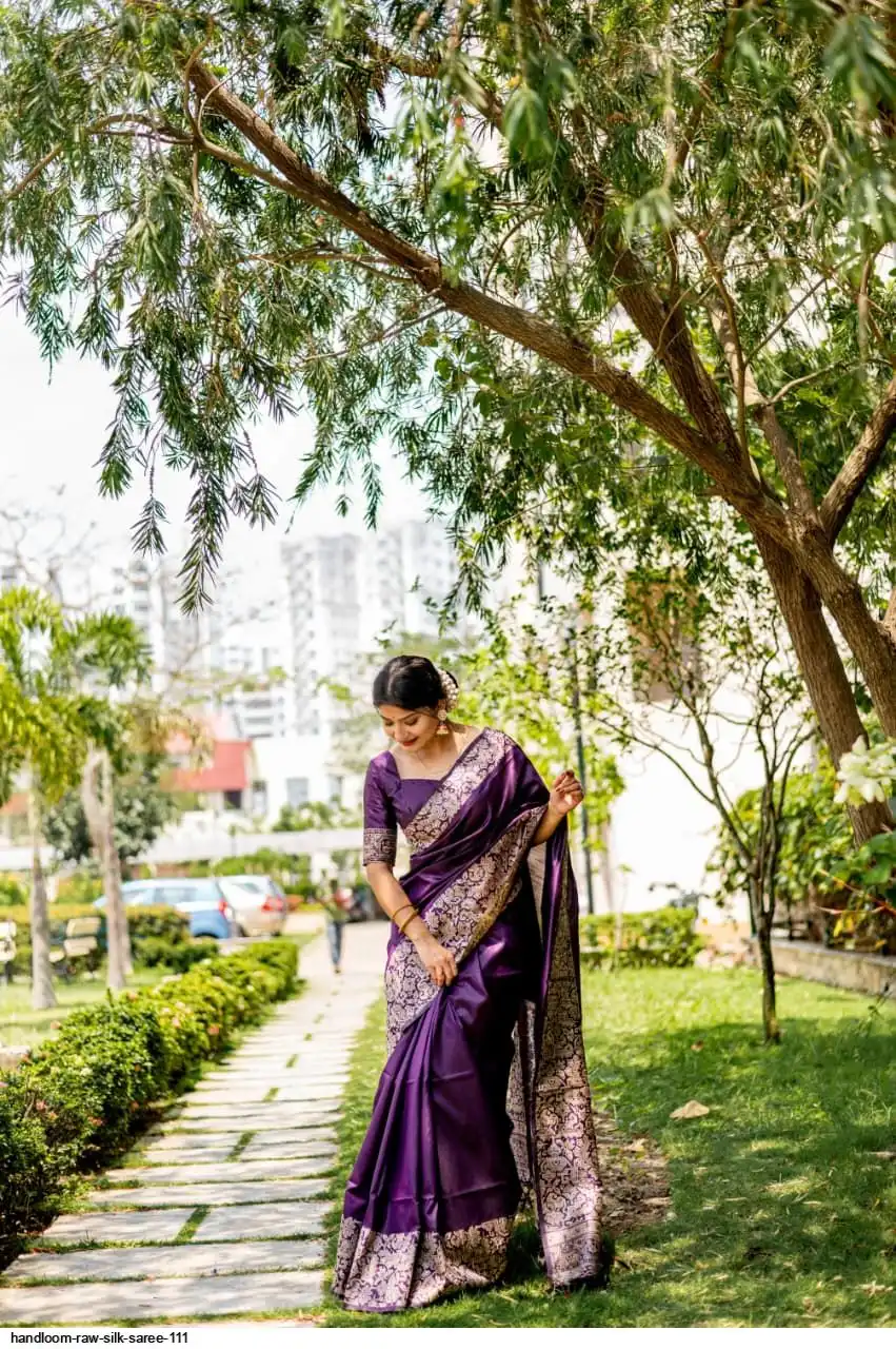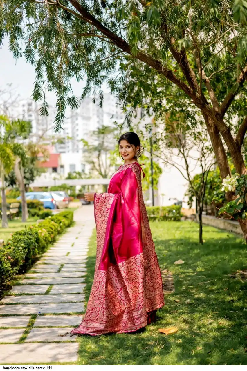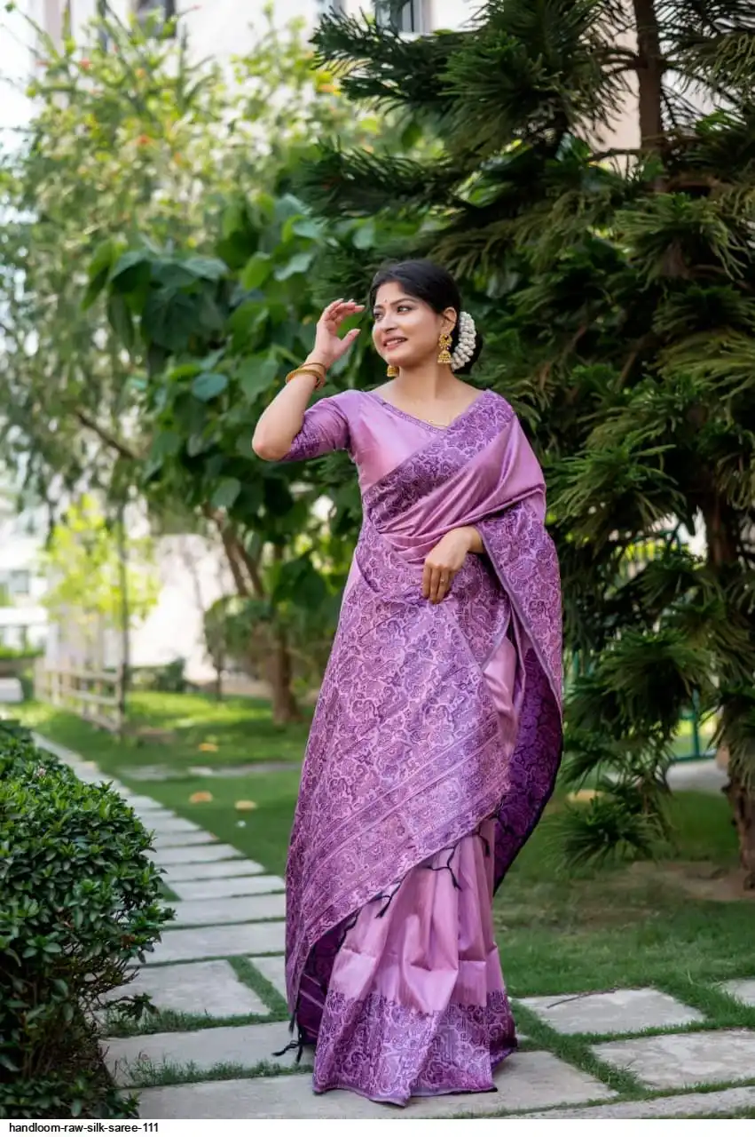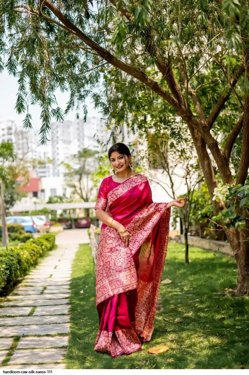 HANDLOOM RAW SILK SAREE WITH RICH WEVING PALLU AND RUNNING BLOUSE PIECE