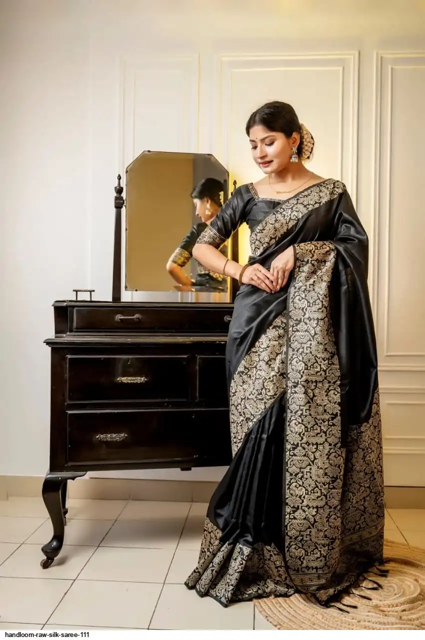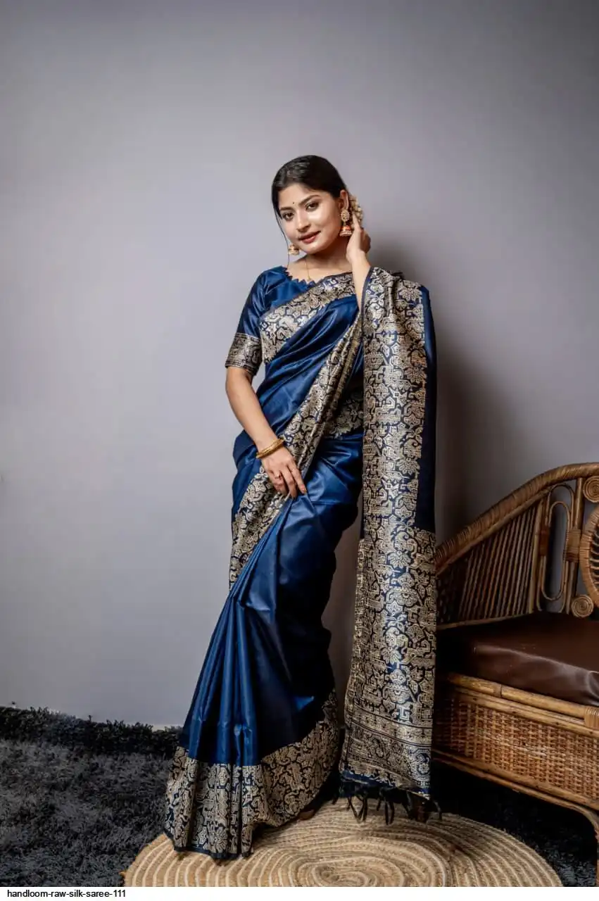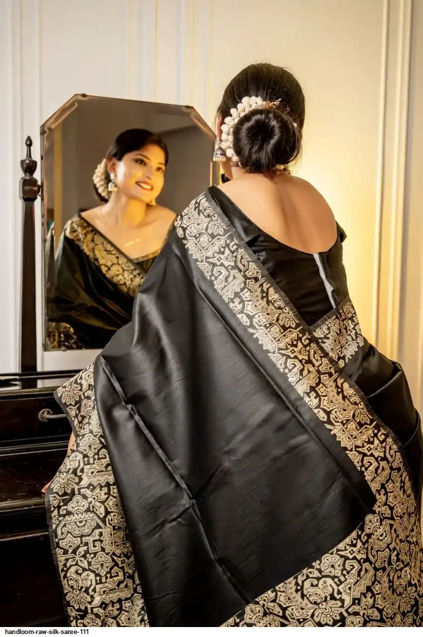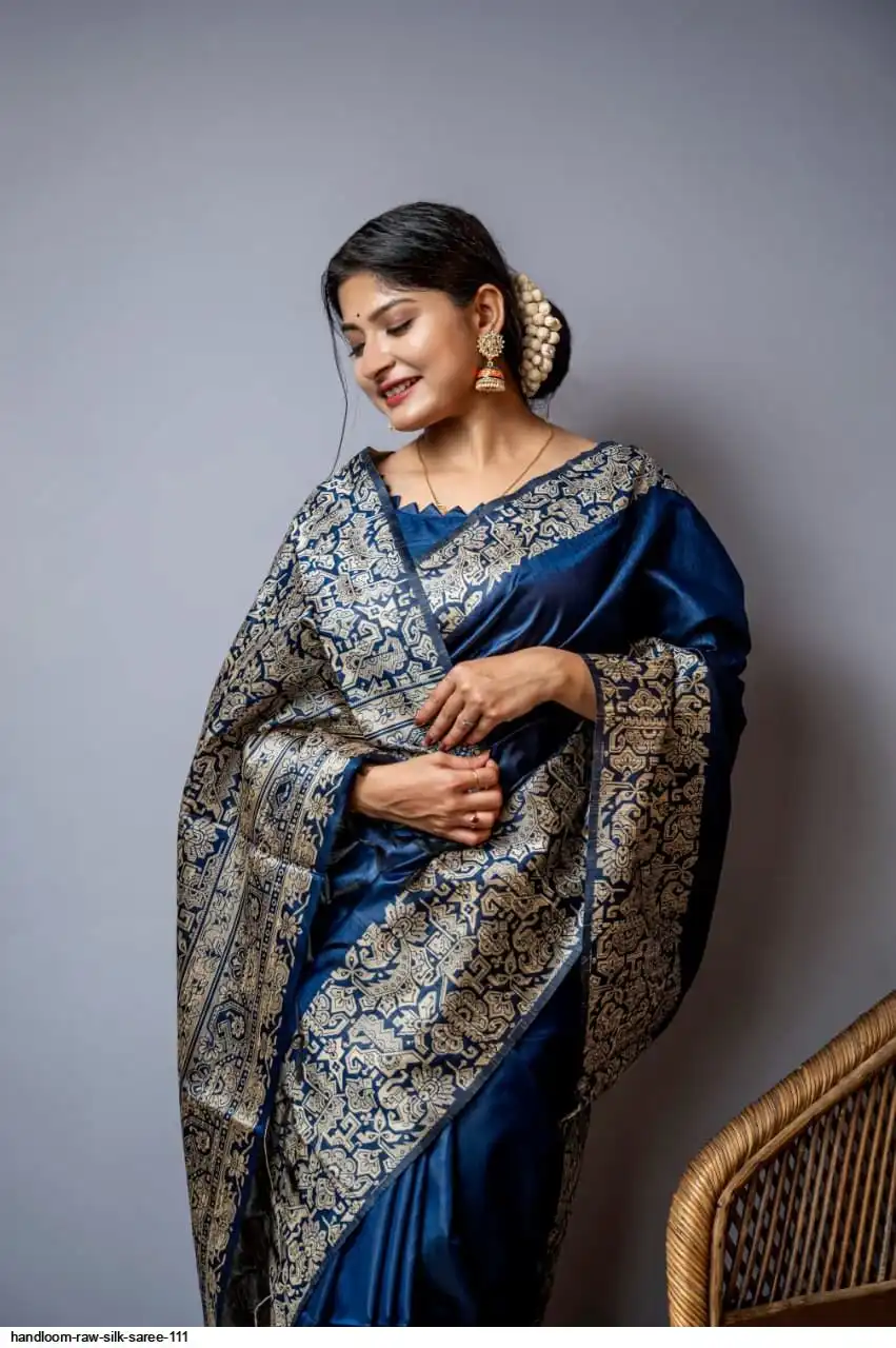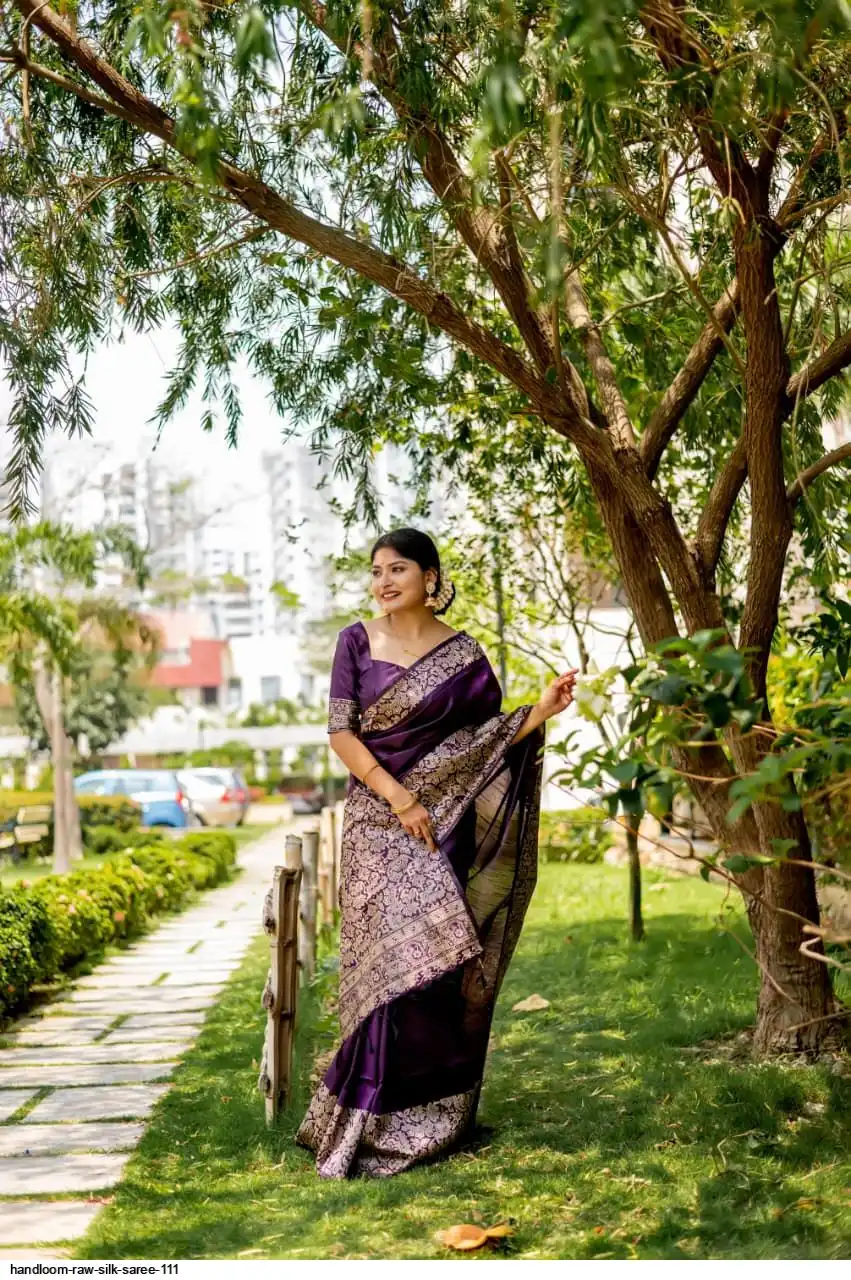 HANDLOOM RAW SILK SAREE WITH RICH WEVING PALLU AND RUNNING BLOUSE PIECE