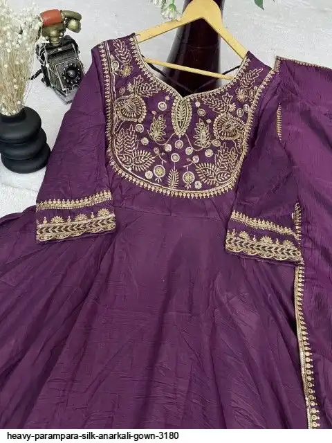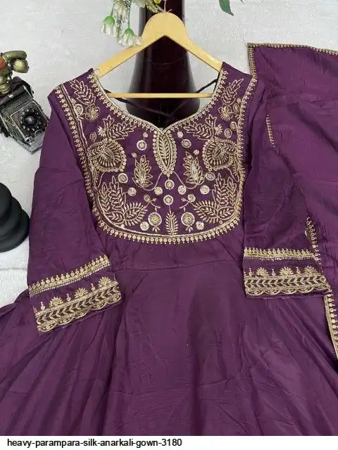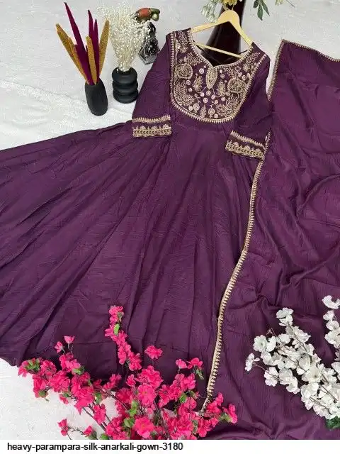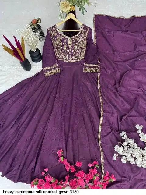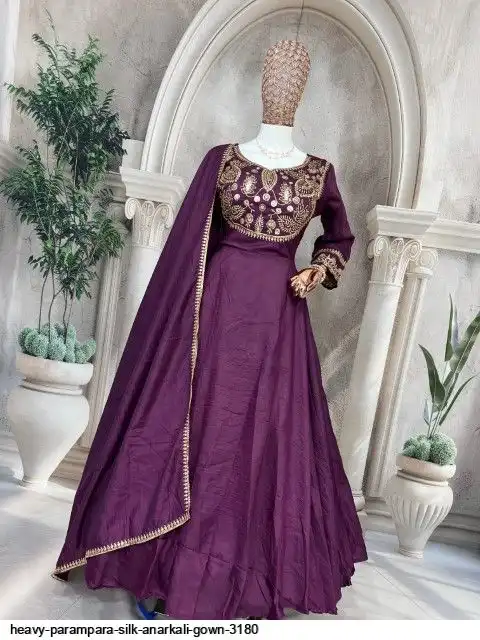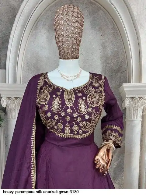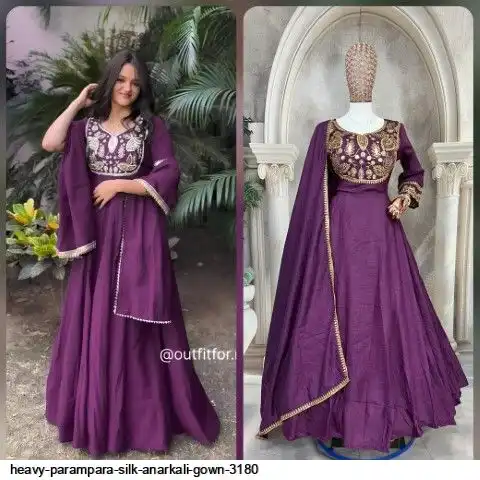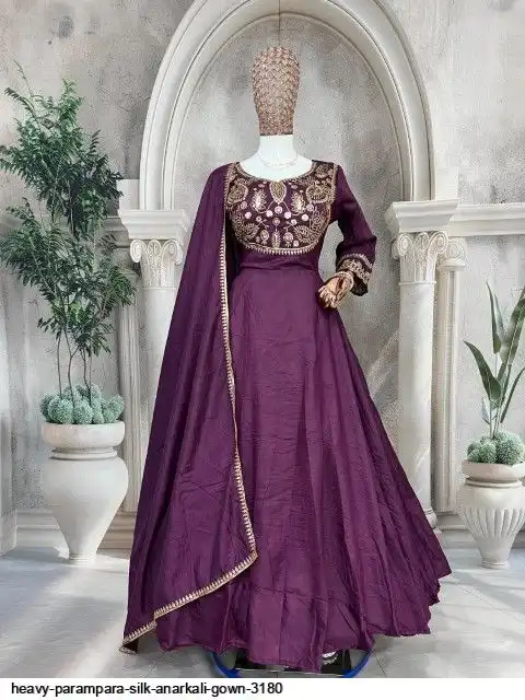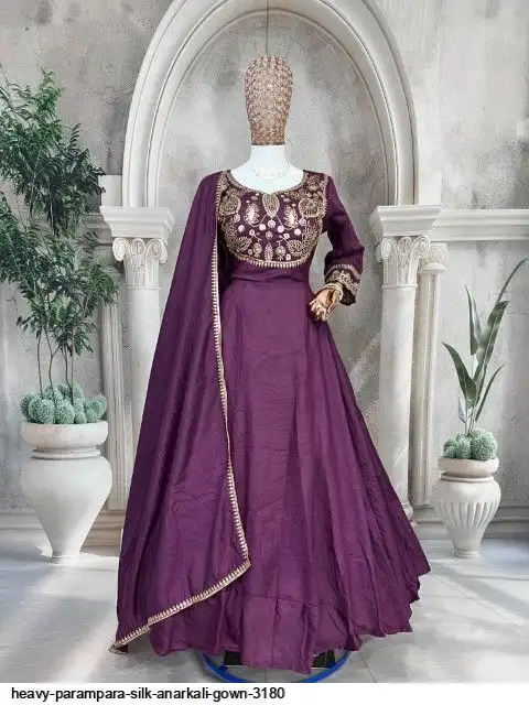 π Gown Fabric :- Heavy Parampara Silk (Cotton Silk) Fabric Gown Coming With hige flair 8Mtr Falir With used Padded & Micro Cotton silk inner (Fully stitched)