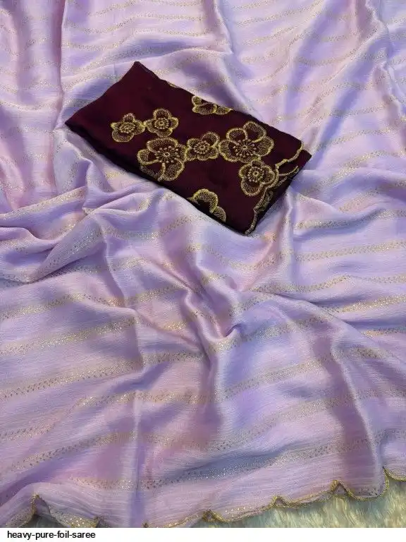Pure Foil saree with aarko border with embroidery work blouse