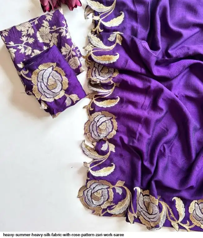 We get you what you heavy summer heavy silk fabric with rose pattern zari work
