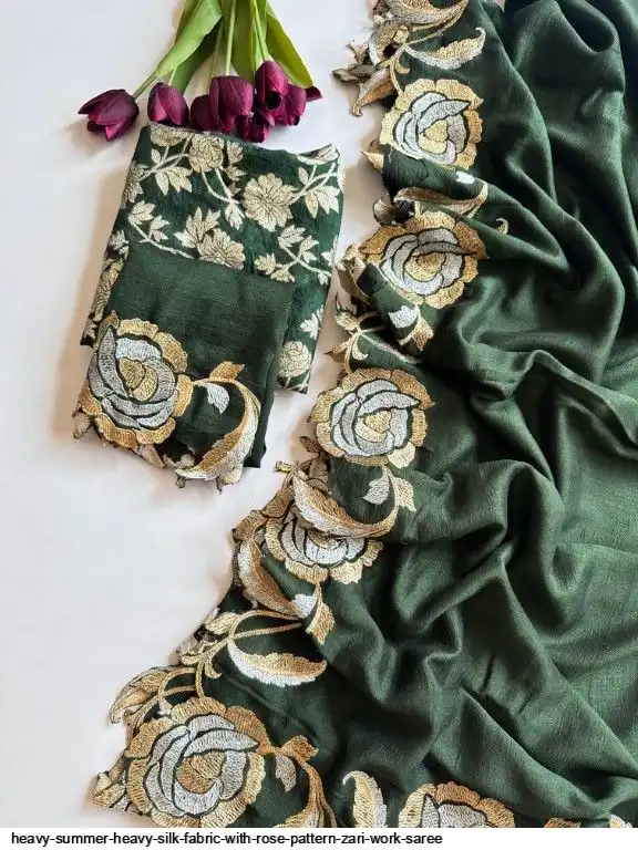 We get you what you heavy summer heavy silk fabric with rose pattern zari work