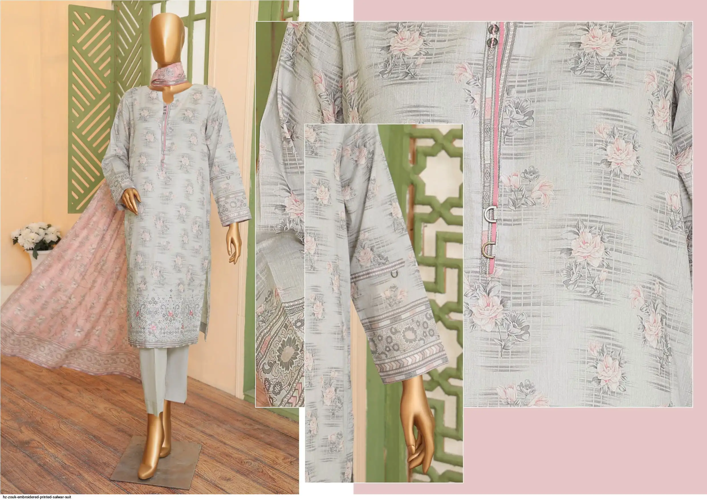 •Digital Printed Embroidered Lawn Shirt