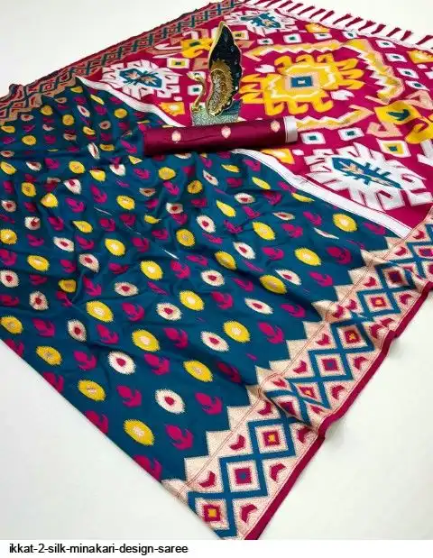 It have a Banarasi zari and Meenakari ikkat design weawing