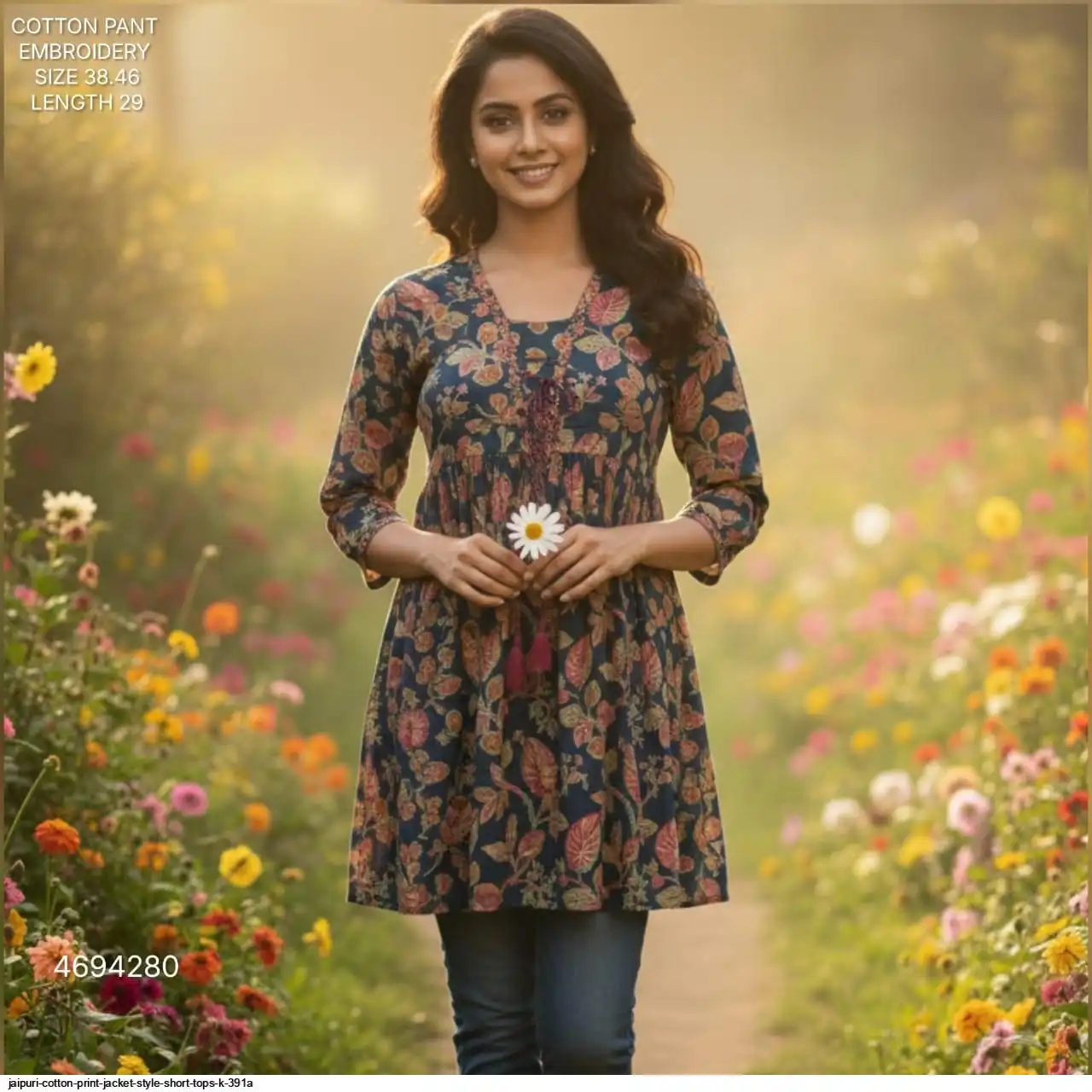 JAIPURI COTTON PRINT JACKET STYLE SHORT TOPS K 391A
