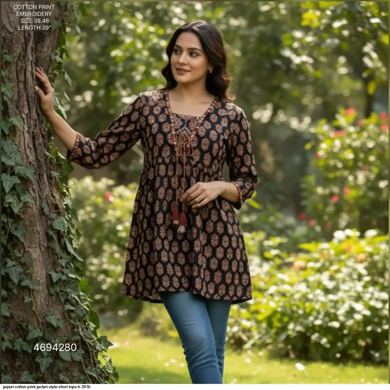 JAIPURI COTTON PRINT JACKET STYLE SHORT TOPS K 391B