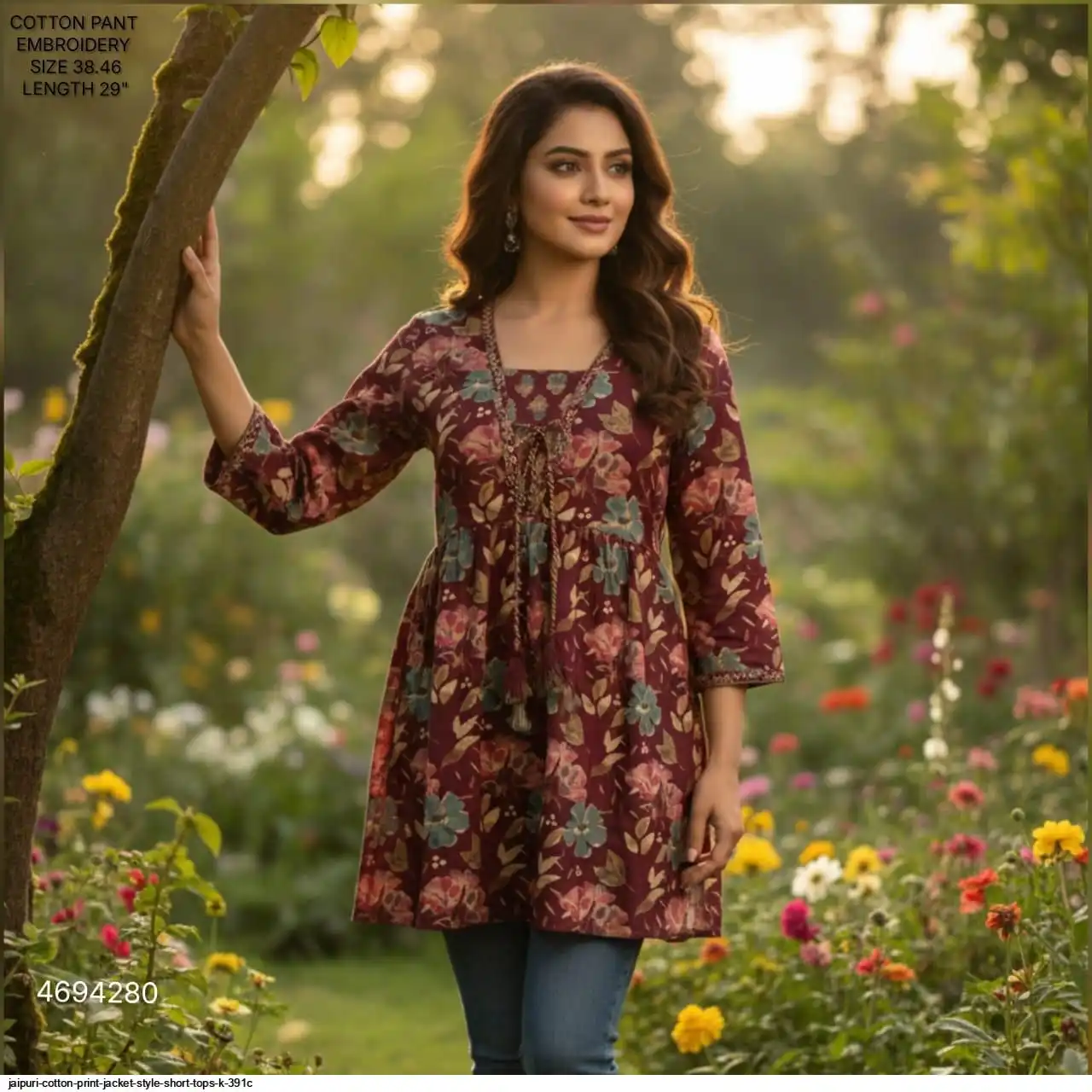 JAIPURI COTTON PRINT JACKET STYLE SHORT TOPS K 391C