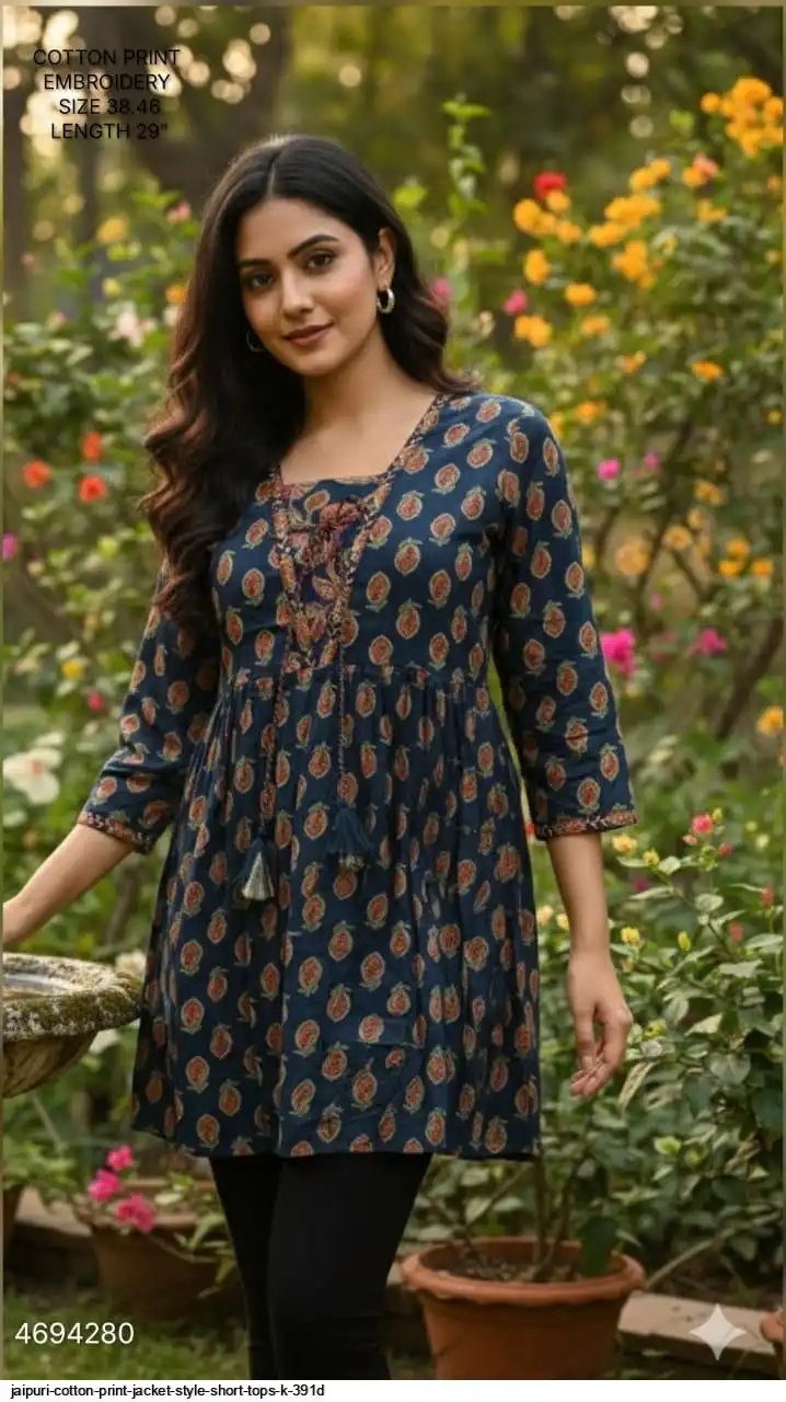 JAIPURI COTTON PRINT JACKET STYLE SHORT TOPS K 391D