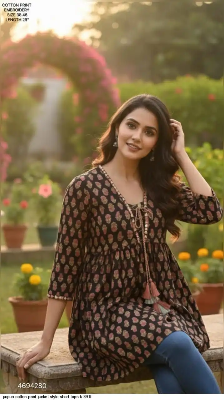 JAIPURI COTTON PRINT JACKET STYLE SHORT TOPS K 391F