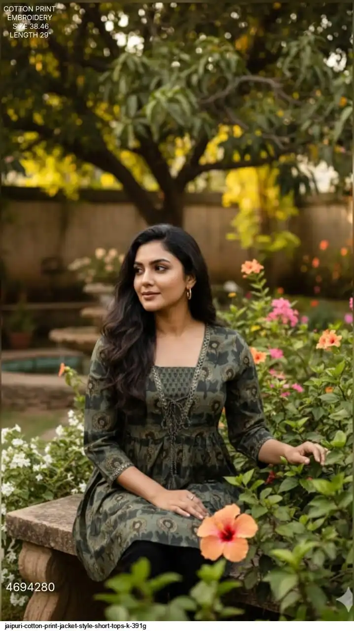 JAIPURI COTTON PRINT JACKET STYLE SHORT TOPS K 391G