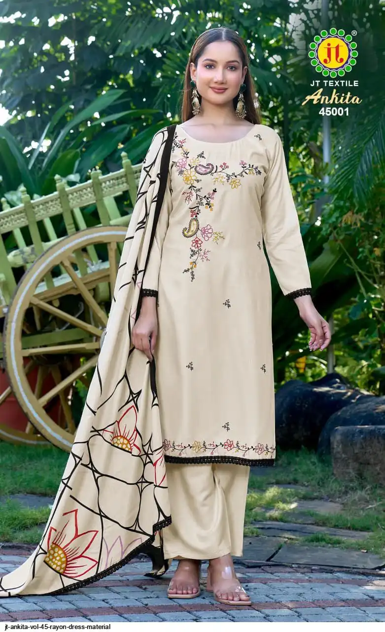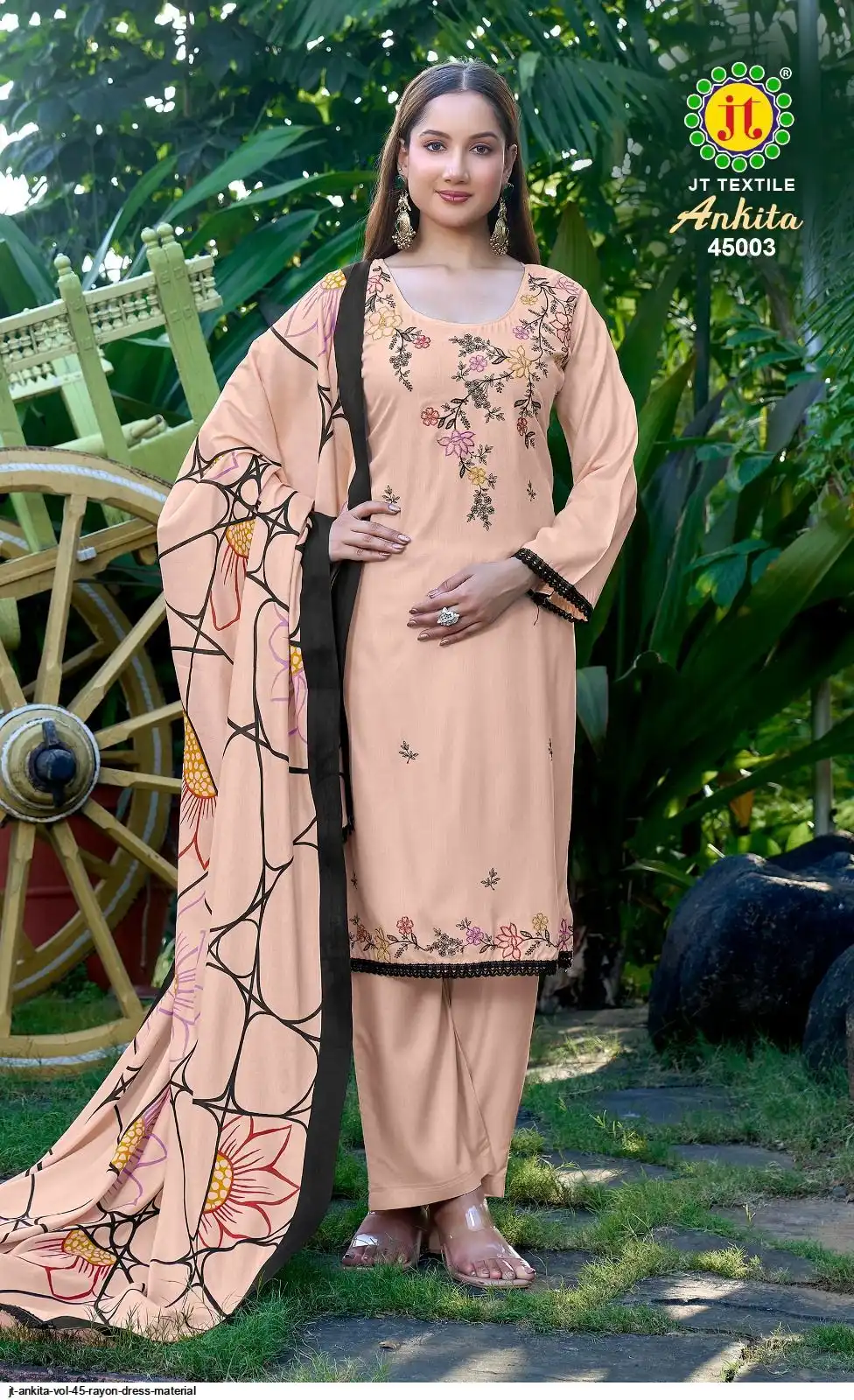 TOP: Rayon Printed With Embroidery Work And Lace ( 2.50mtr)