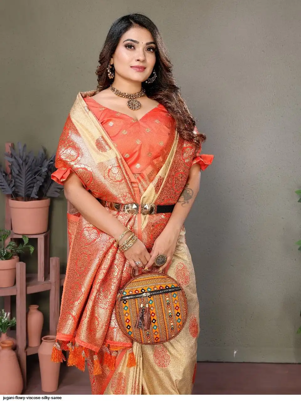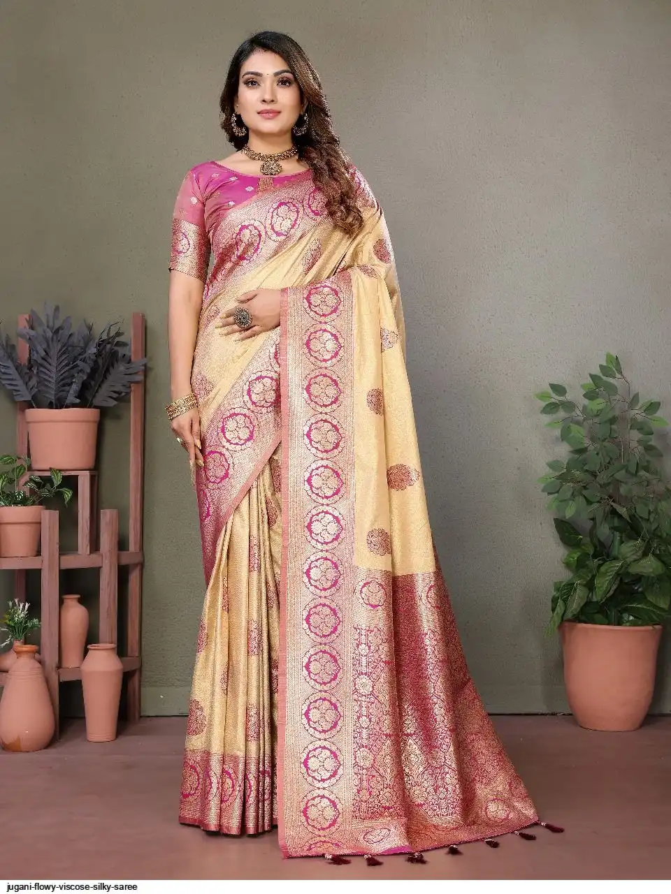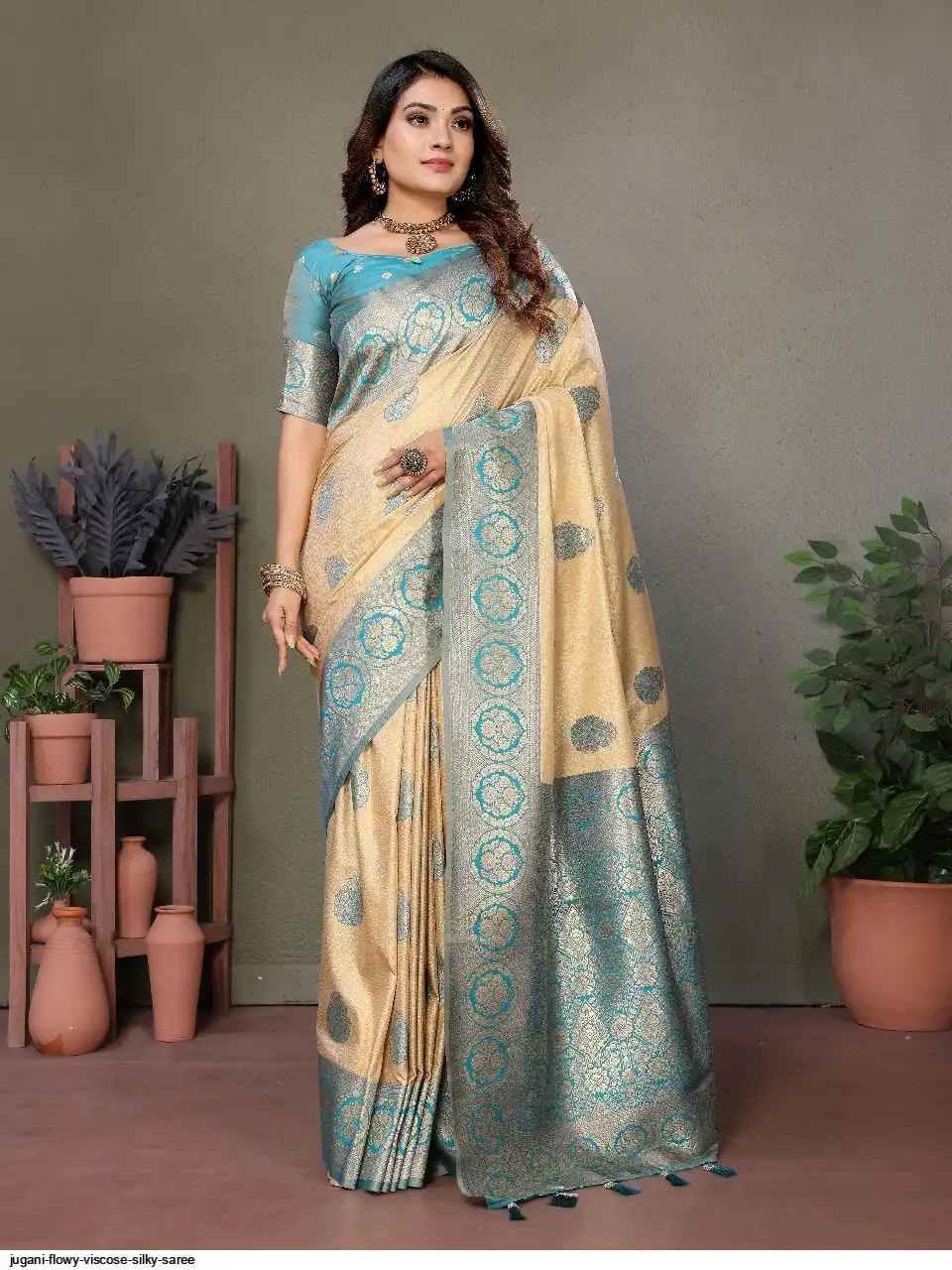 The rich and high quality soft, flowy Viscose silky sarees that are soft and with all over weaving butties in the body with contrast border , woven Rich pallu