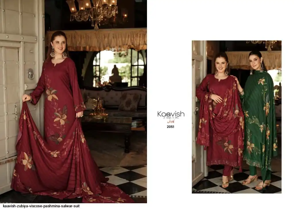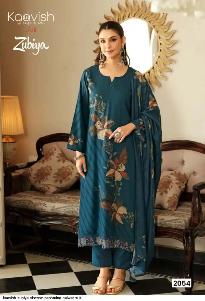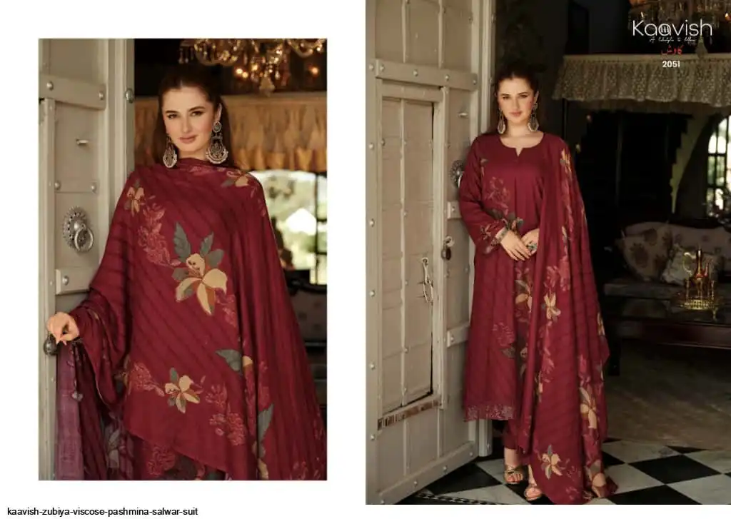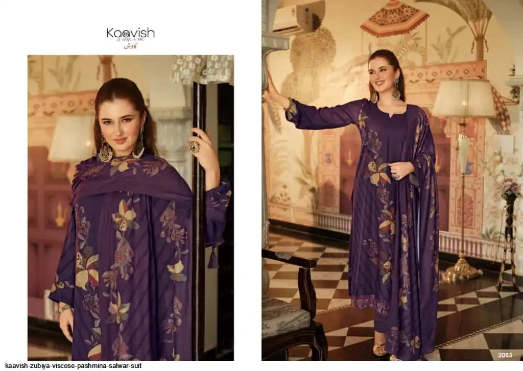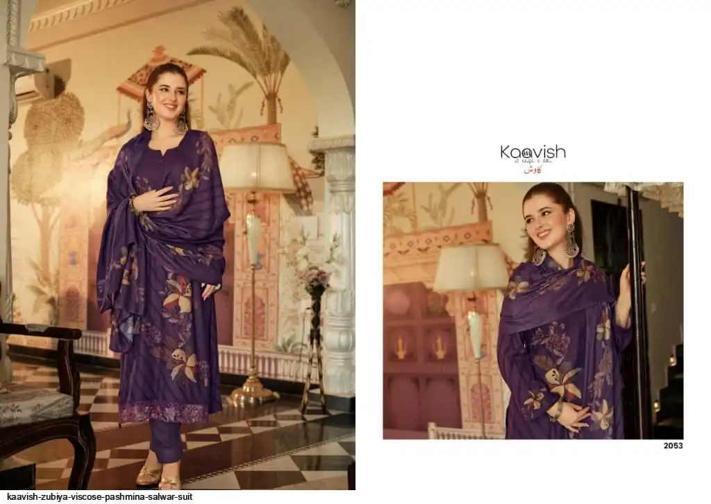 Top:-PURE VISCOSE PASHMINA DIGITAL FANCY EMBROIDERY WORK & DAMAN LACES