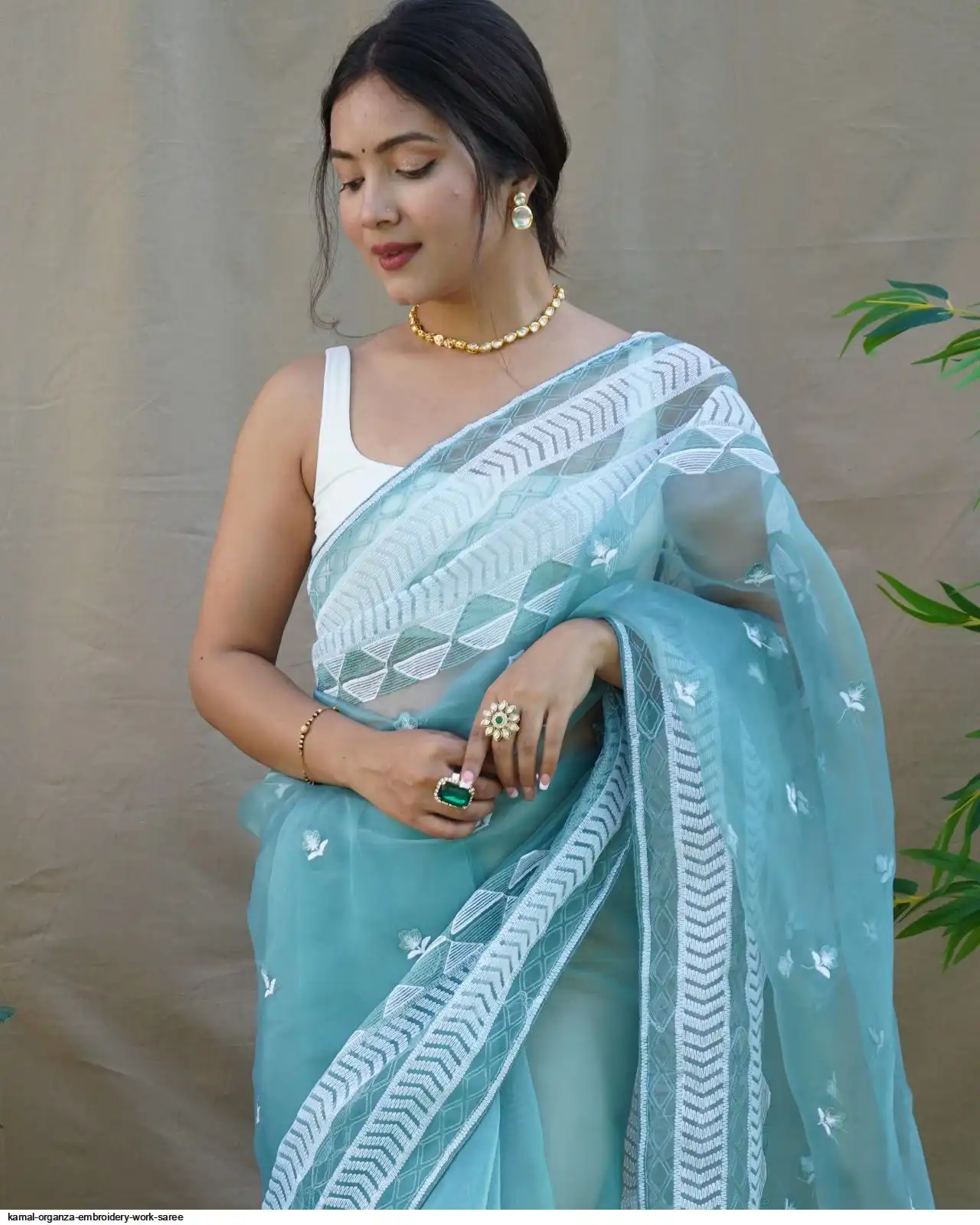 Work : Embroidery Zig Zag Work With Piping Border with beglory satin silk blouse