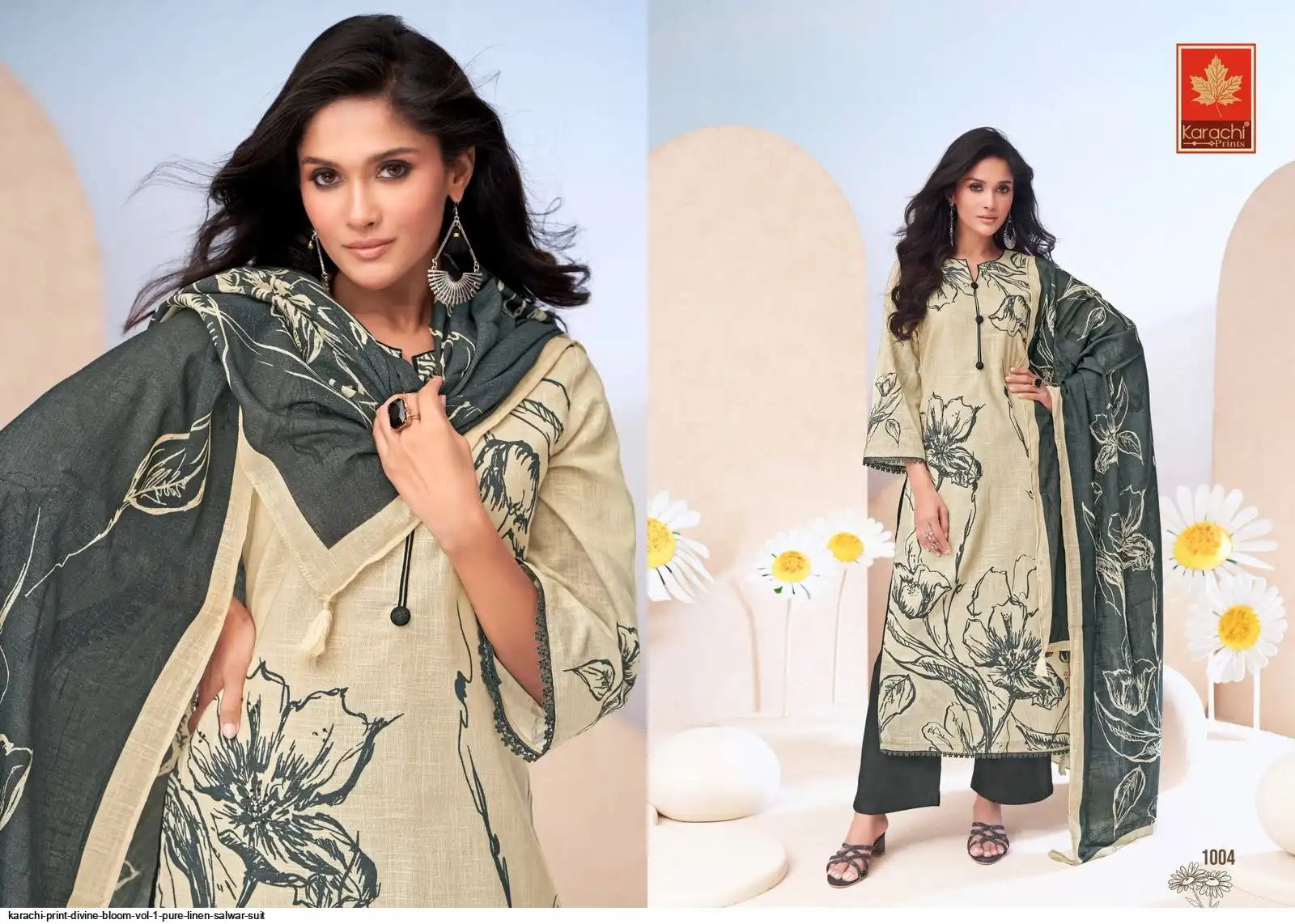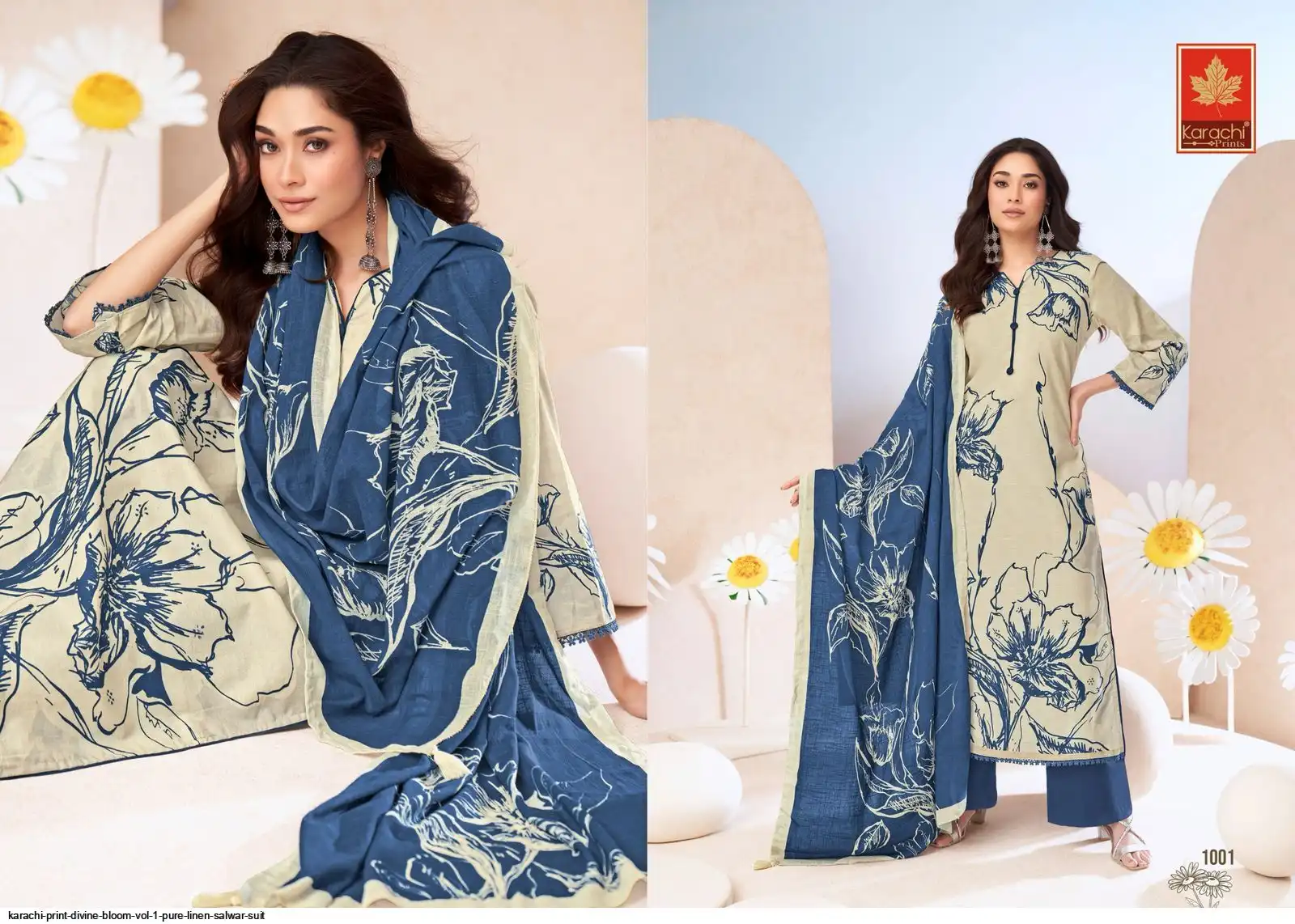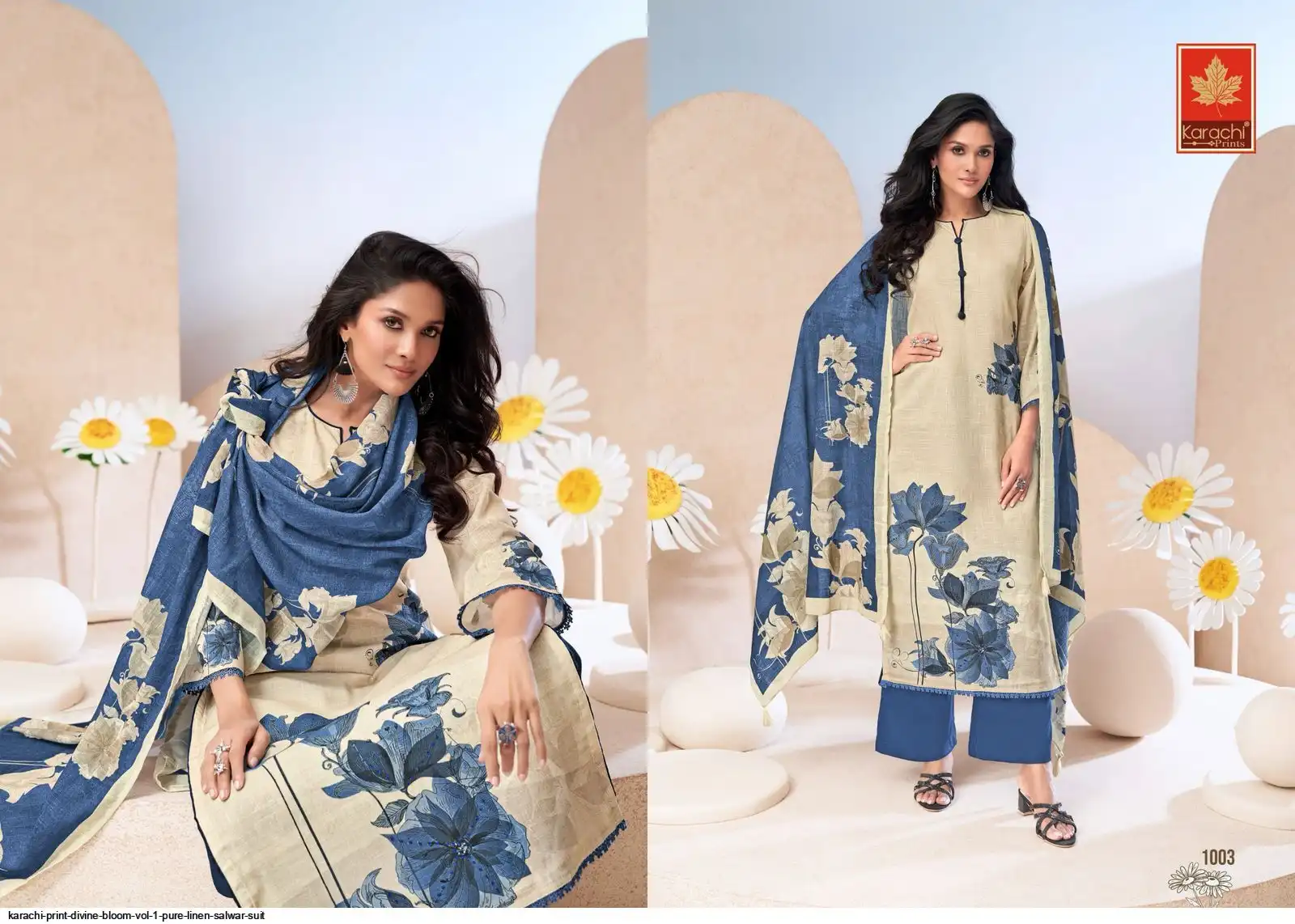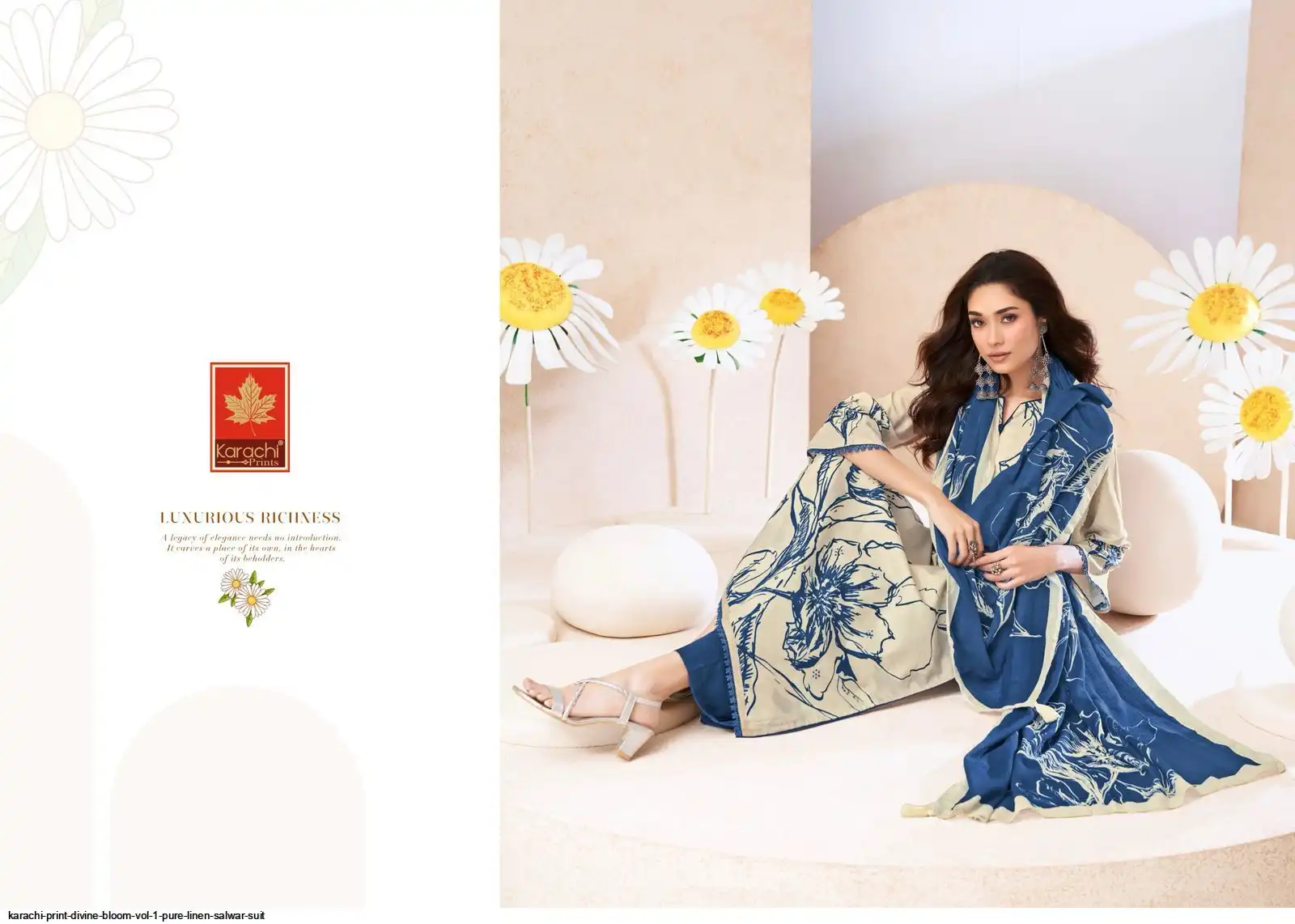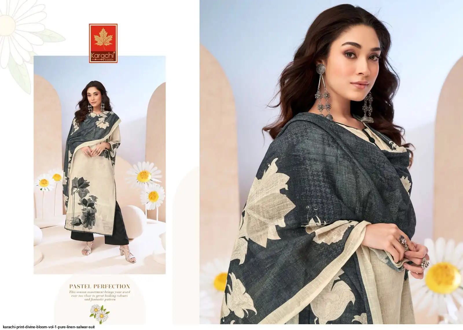 KARACHI PRINT DIVINE BLOOM VOL 1 PURE LINEN SALWAR SUIT