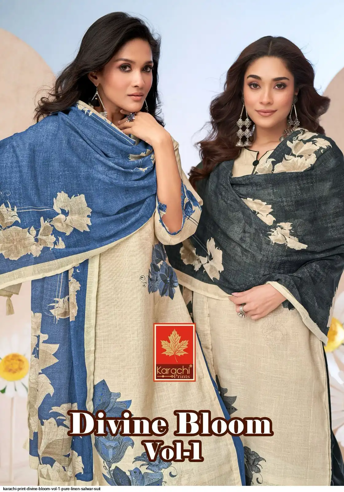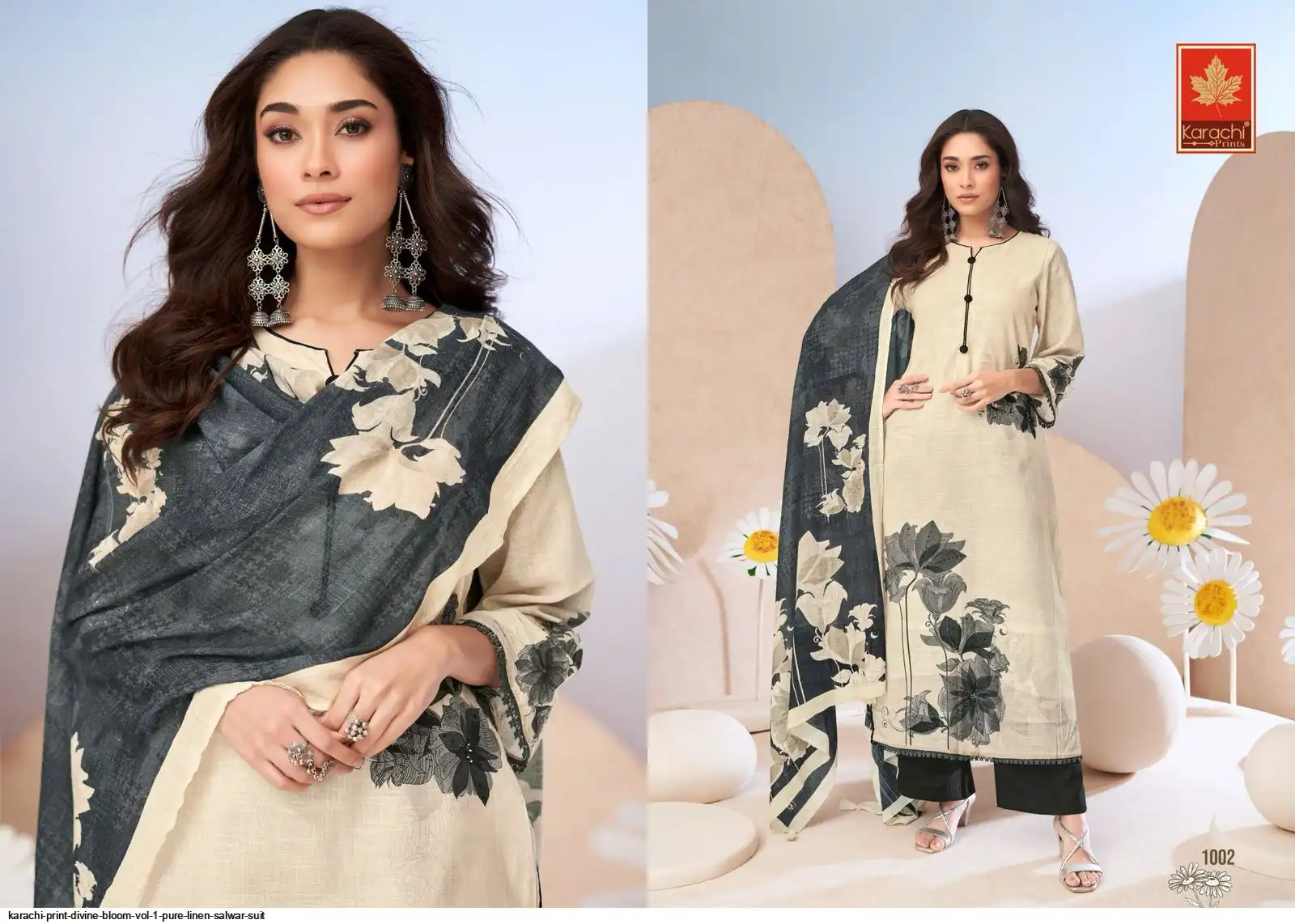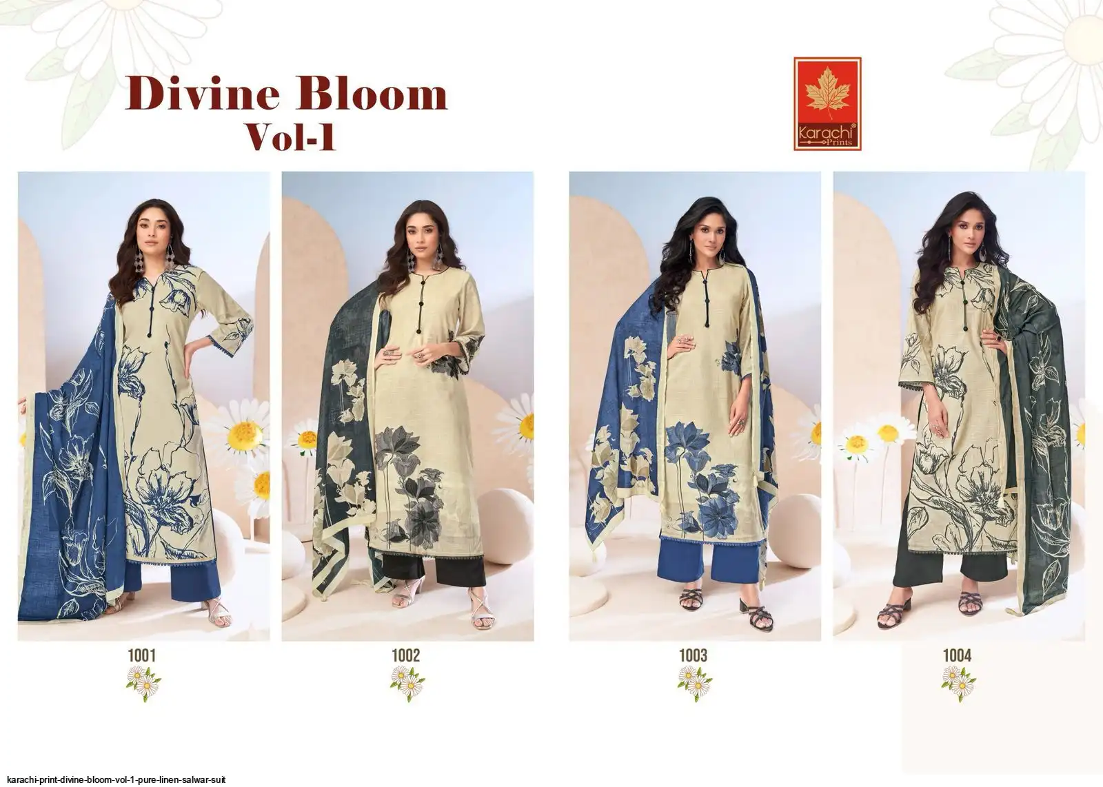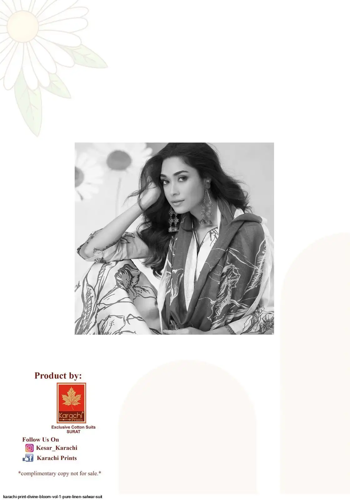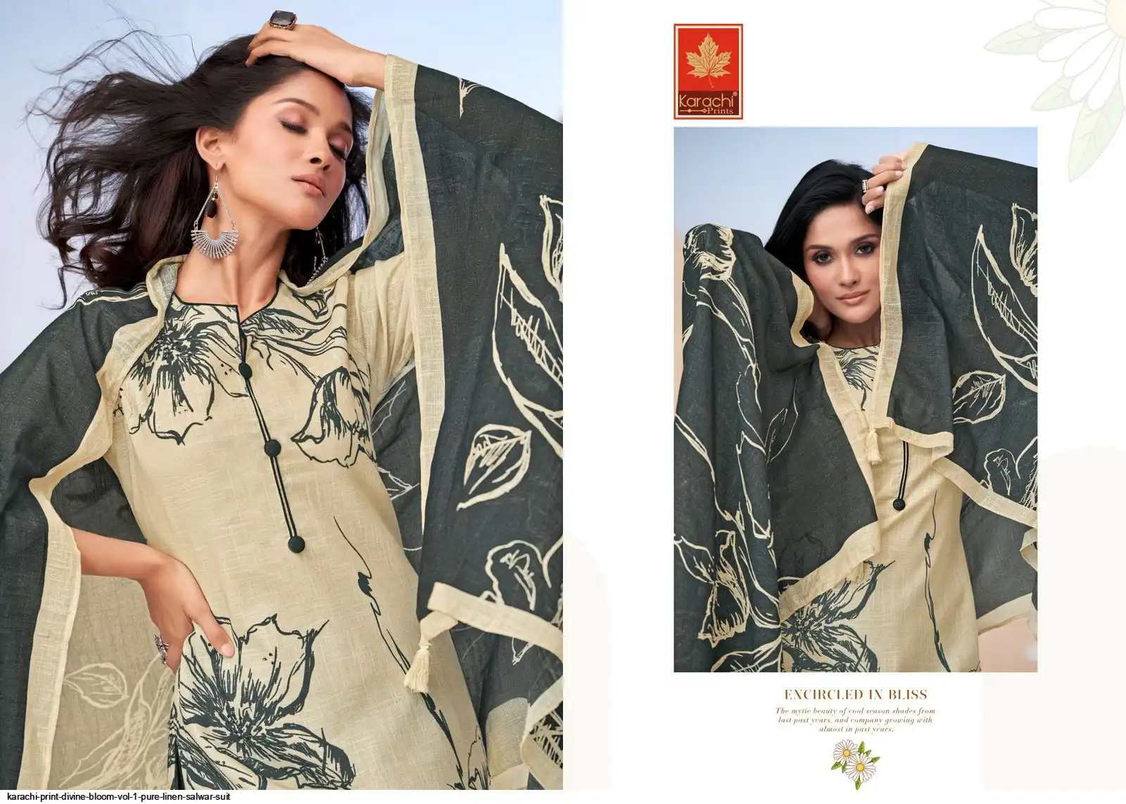 KARACHI PRINT DIVINE BLOOM VOL 1 PURE LINEN SALWAR SUIT