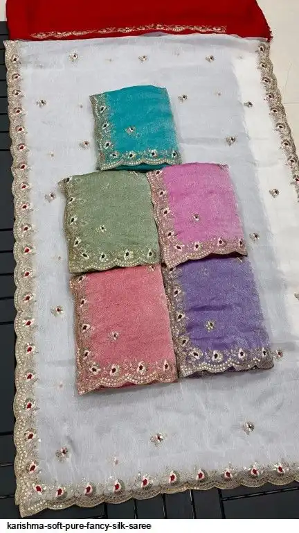 Here we go with Beautiful *Soft Pure Fancy Silk with Premium C Pallu Sequins Work and All Over in Butti Work Sarees with Contrast Mono Silk Blouse for your upcoming festive or party or marriage entry....