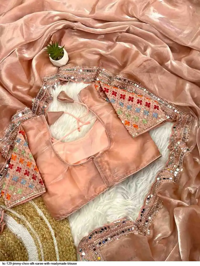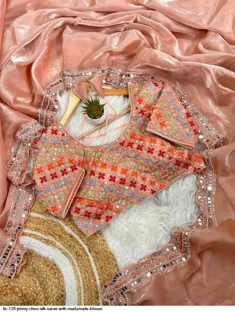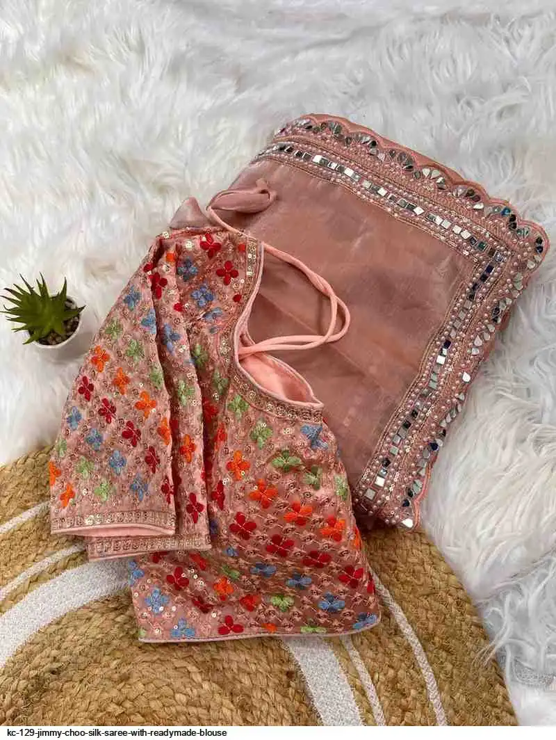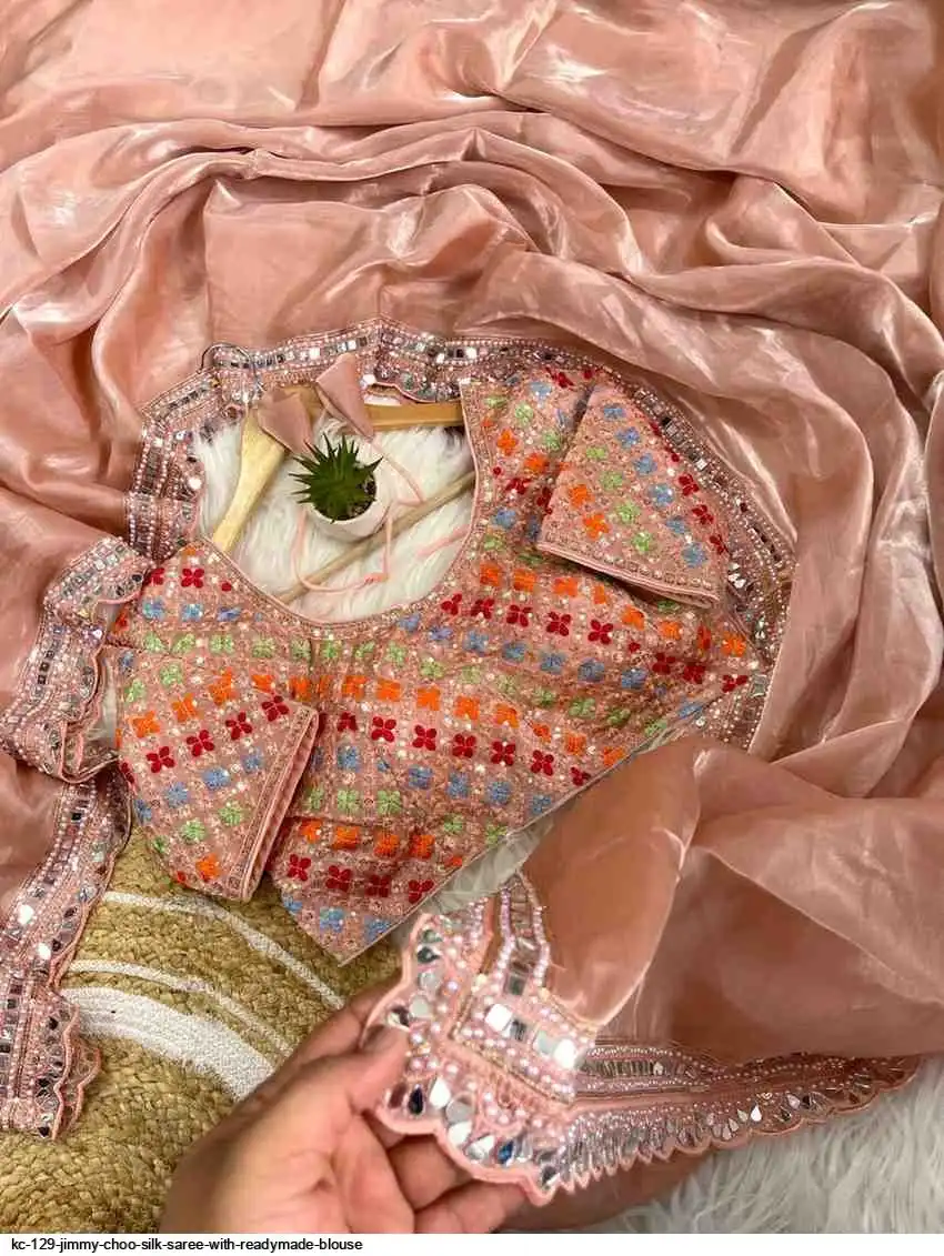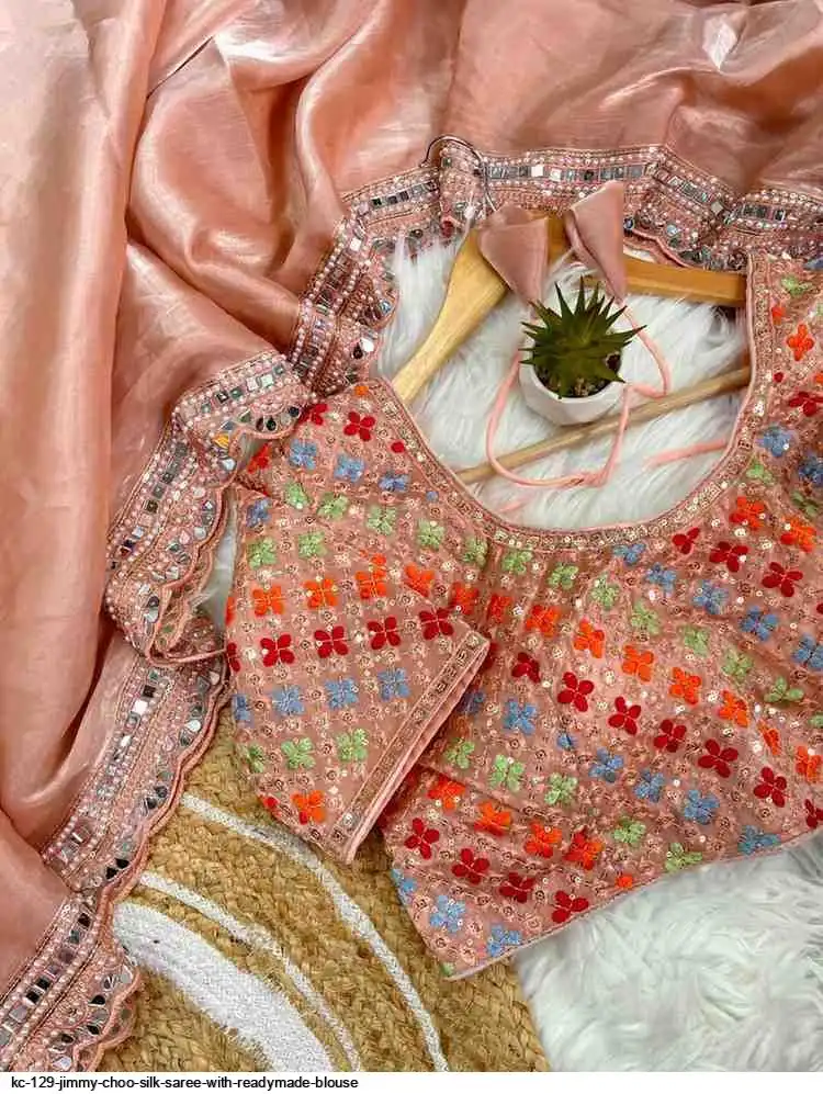 Pure soft jimmy choo silk saree with beautiful embroidery work heavy borders with original mirror nd aarco ...