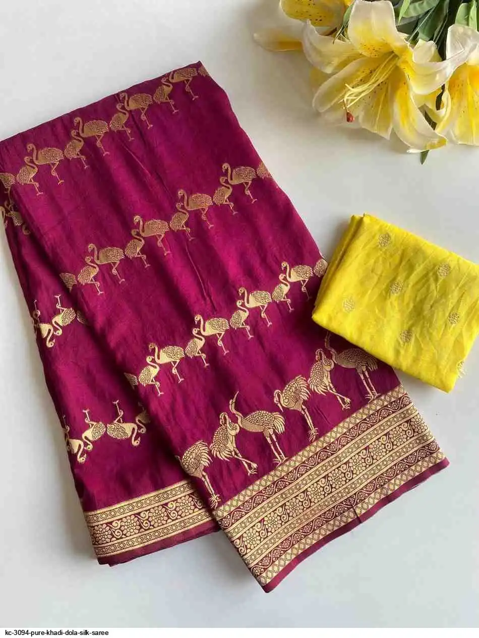 Pure khadi dola silk saree with beautiful swan design all over saree with beautiful rich weaved pallu