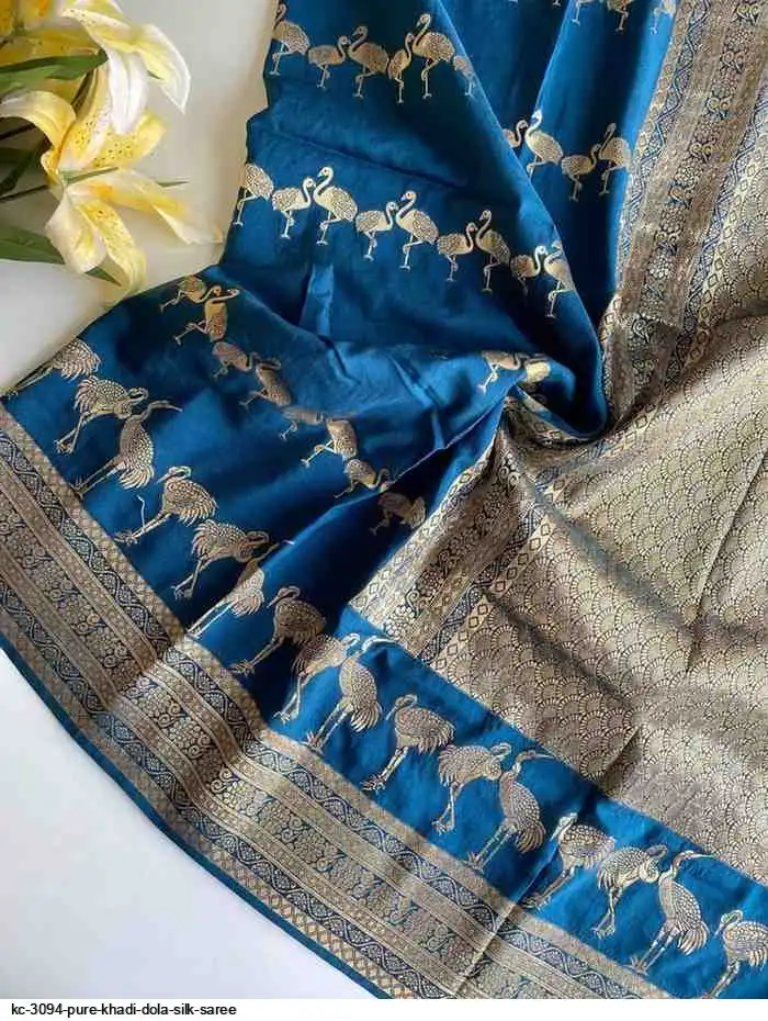 Pure khadi dola silk saree with beautiful swan design all over saree with beautiful rich weaved pallu