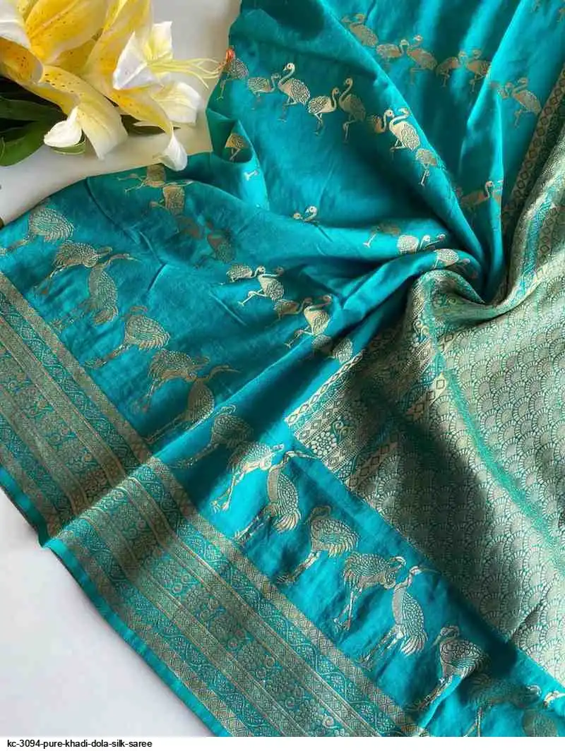 Pure khadi dola silk saree with beautiful swan design all over saree with beautiful rich weaved pallu