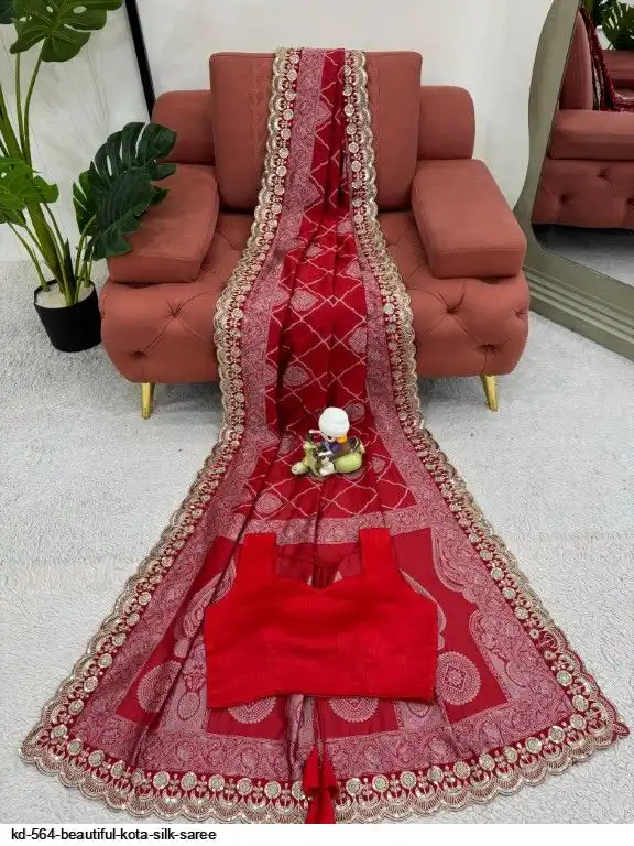 Looking some one for this same colour beautiful Designer Saree on Kota Silk Fabric with Coding & Sequence Lace work and blouse on Mono Banglori Silk Fabric.