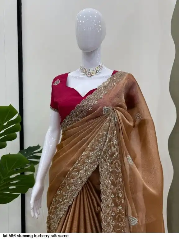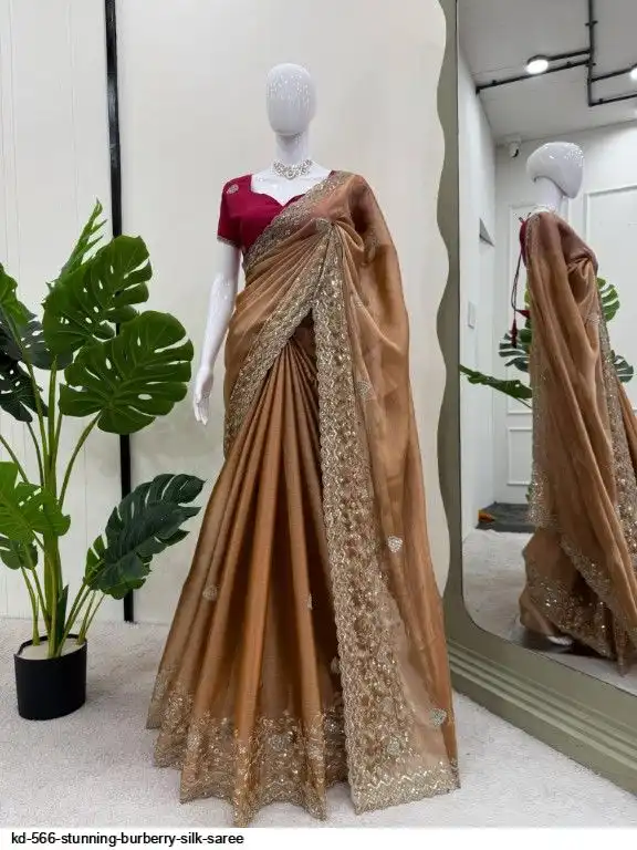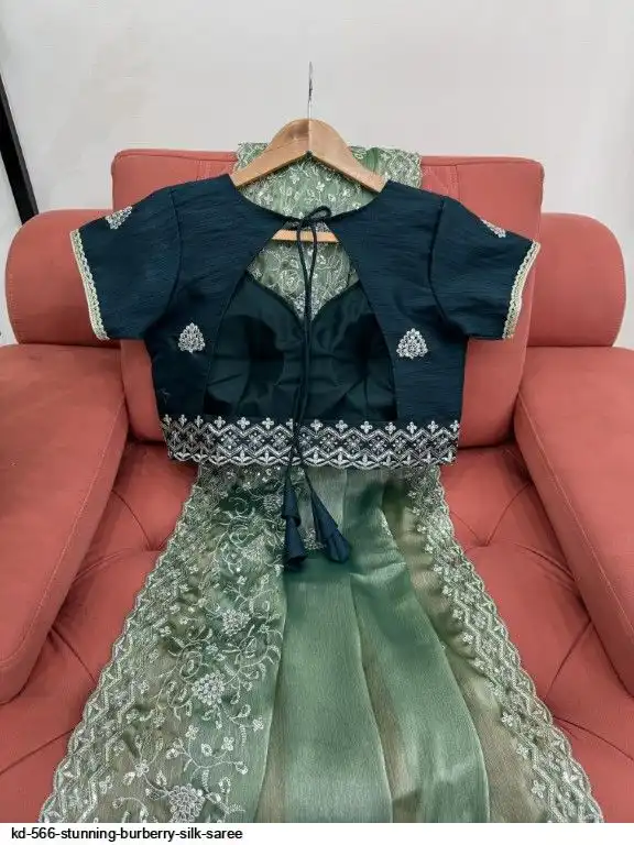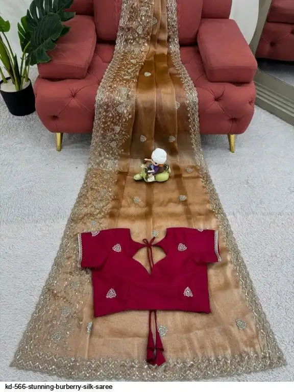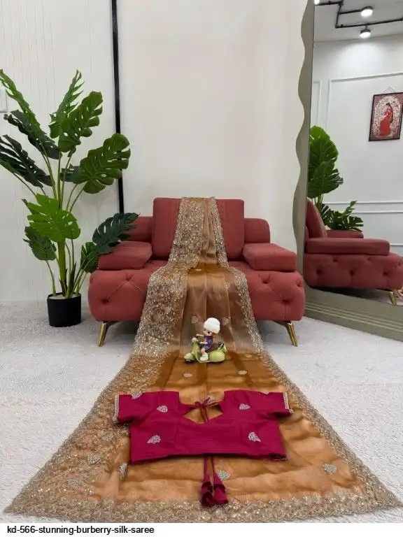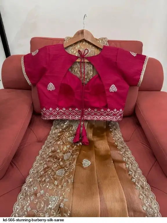 Looking some one for this same colour beautiful Designer Saree on Burberry silk Fabric with Thred & Sequence wok and Blouse on Mono Banglori silk Fabric With Thred & Sequence work.