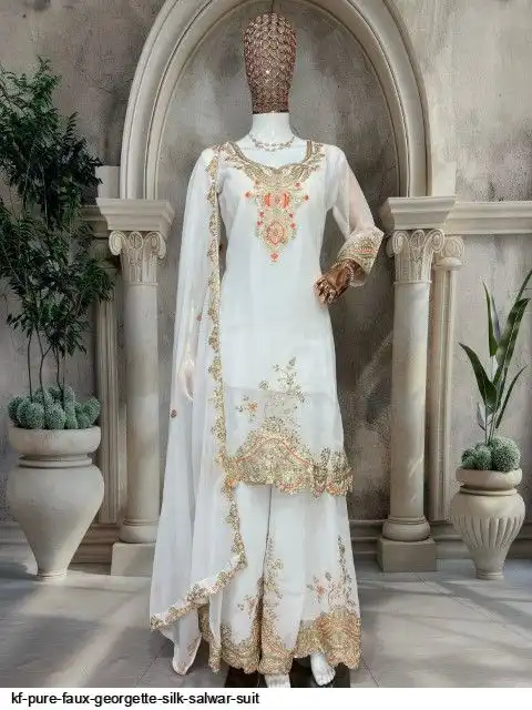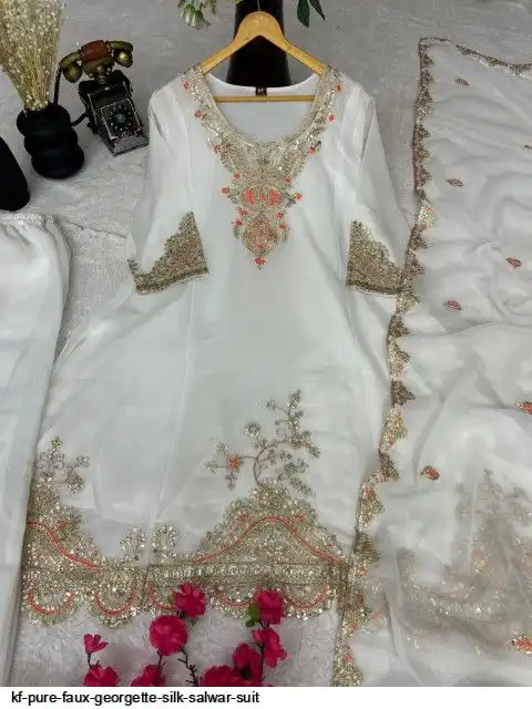๐ Dupatta Fabric :- Pure Faux gorgette Silk Fabric with 4 Side Embroidery work Border (dupatta size 2.20 meter)