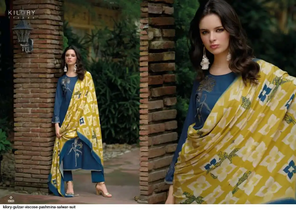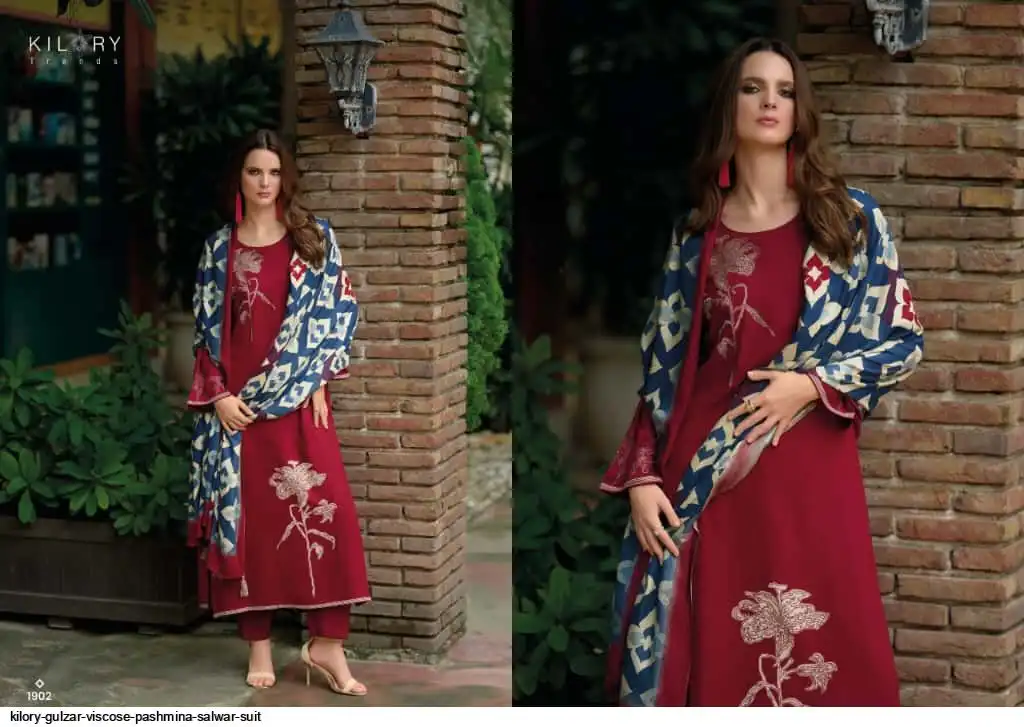 Top:-PURE VISCOSE PASHMINA DIGITAL FOIL PRINT WITH NECK EMBROIDERY