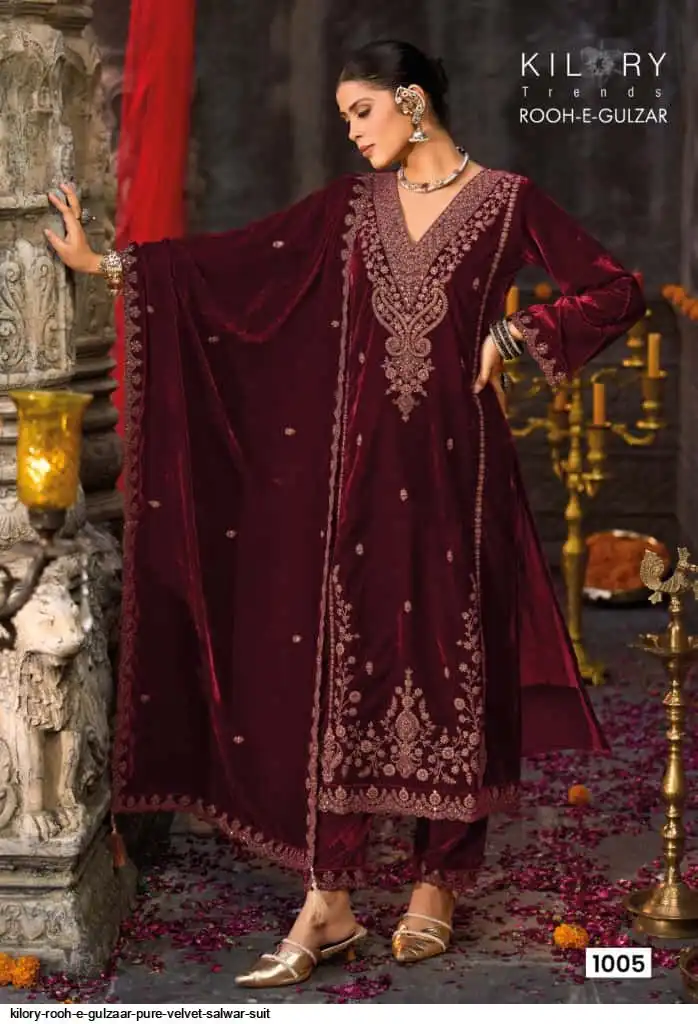 Top:-PURE VELVET WITH CODING EMBROIDERY WORK
