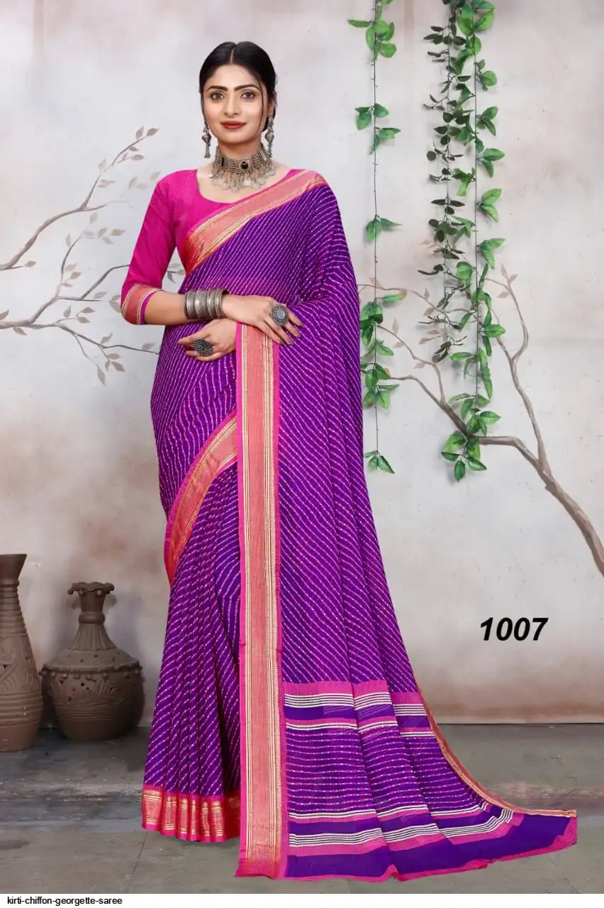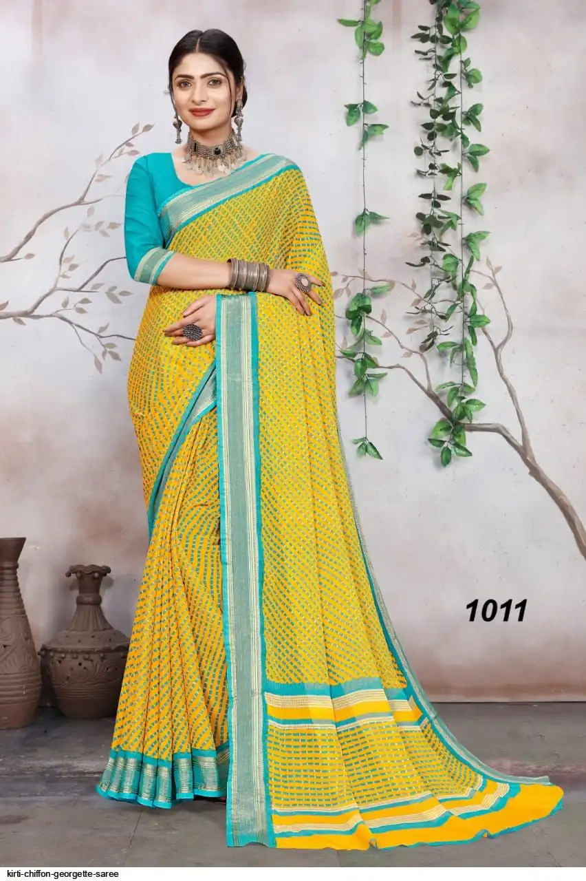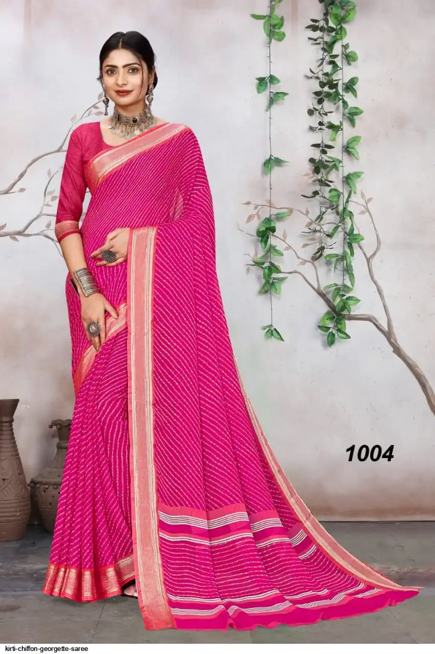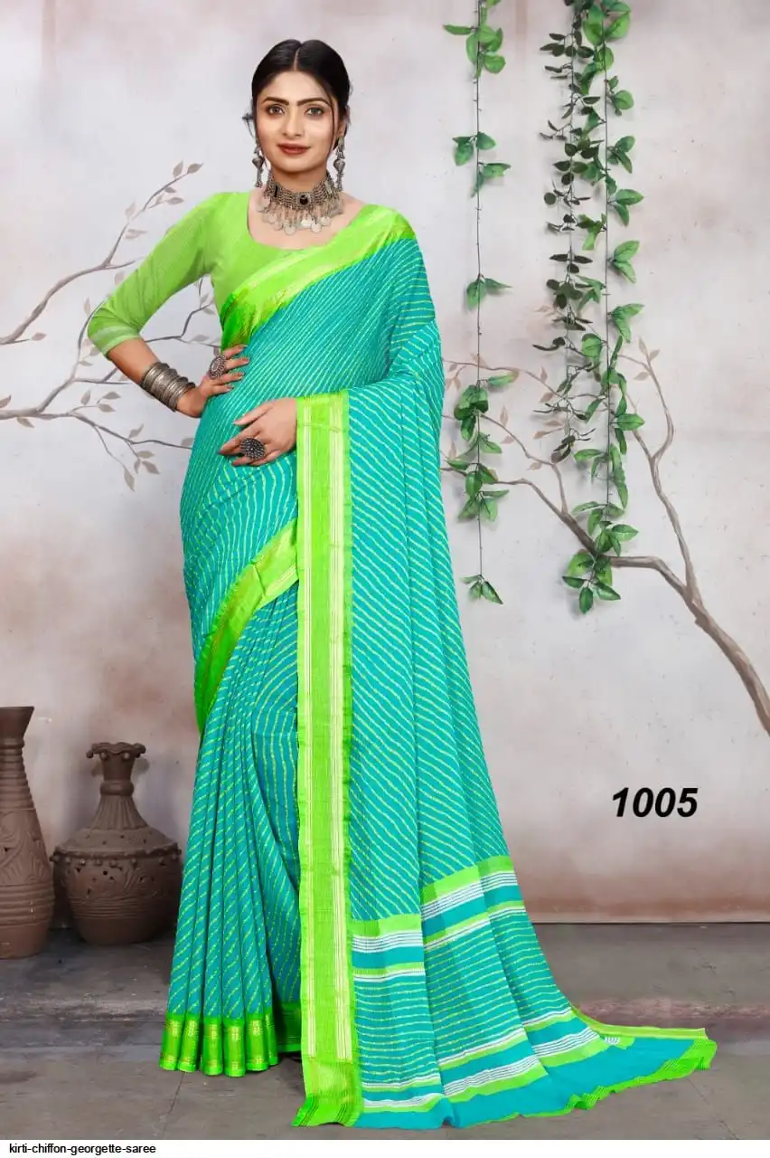 ▶️ Fabric - chiffon Georgette Lehariya print with border zari Running Blouse👚