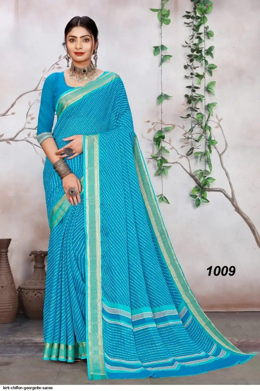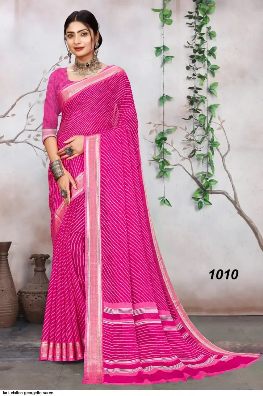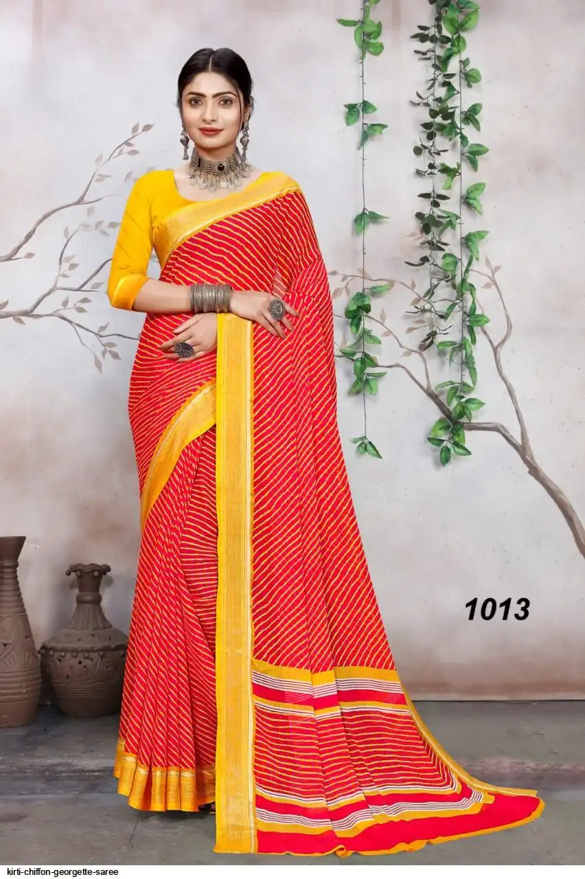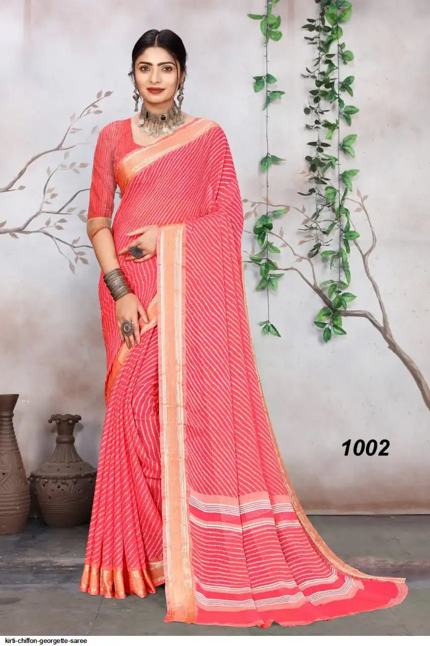 ▶️ Fabric - chiffon Georgette Lehariya print with border zari Running Blouse👚