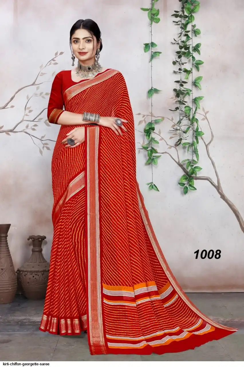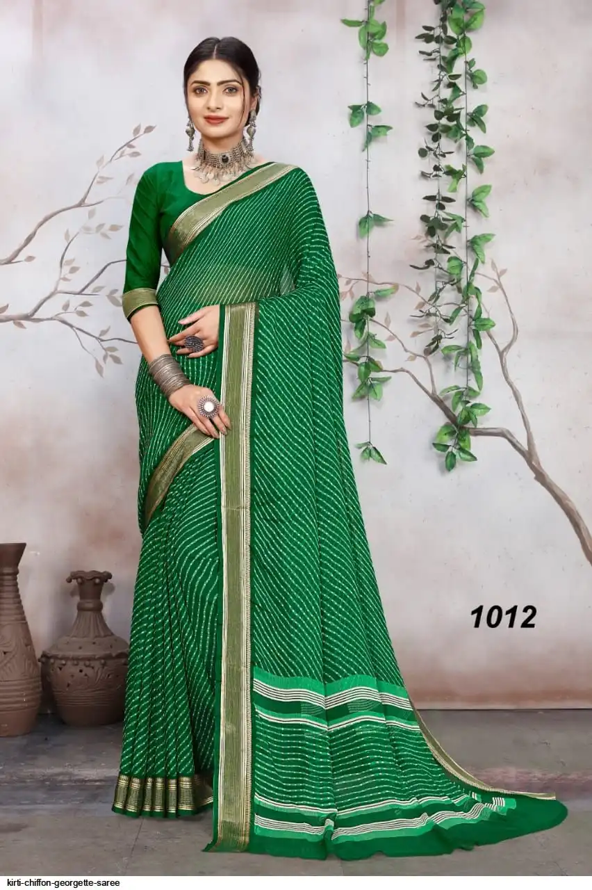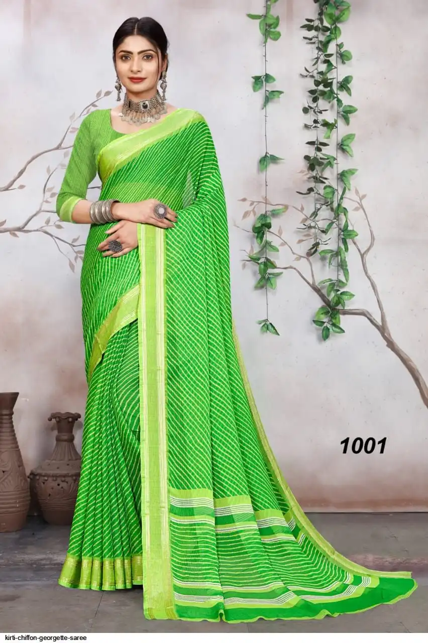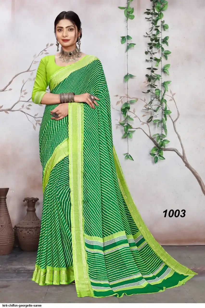 ▶️ Fabric - chiffon Georgette Lehariya print with border zari Running Blouse👚