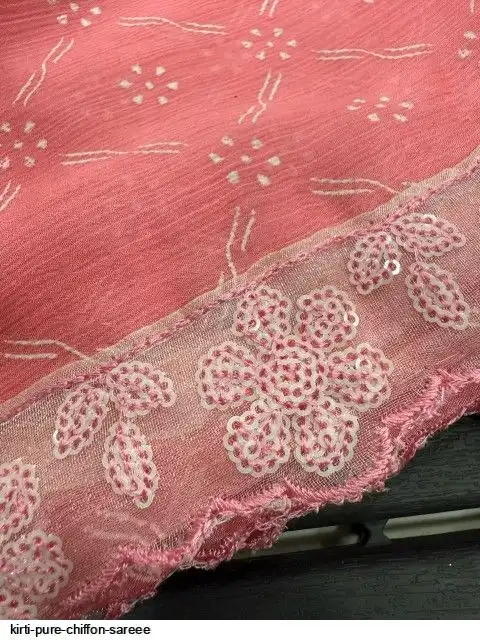 Fabric -Pure Chiffon Fabric With Embroidery Sequence Cutwork Border And Matching Blouse
