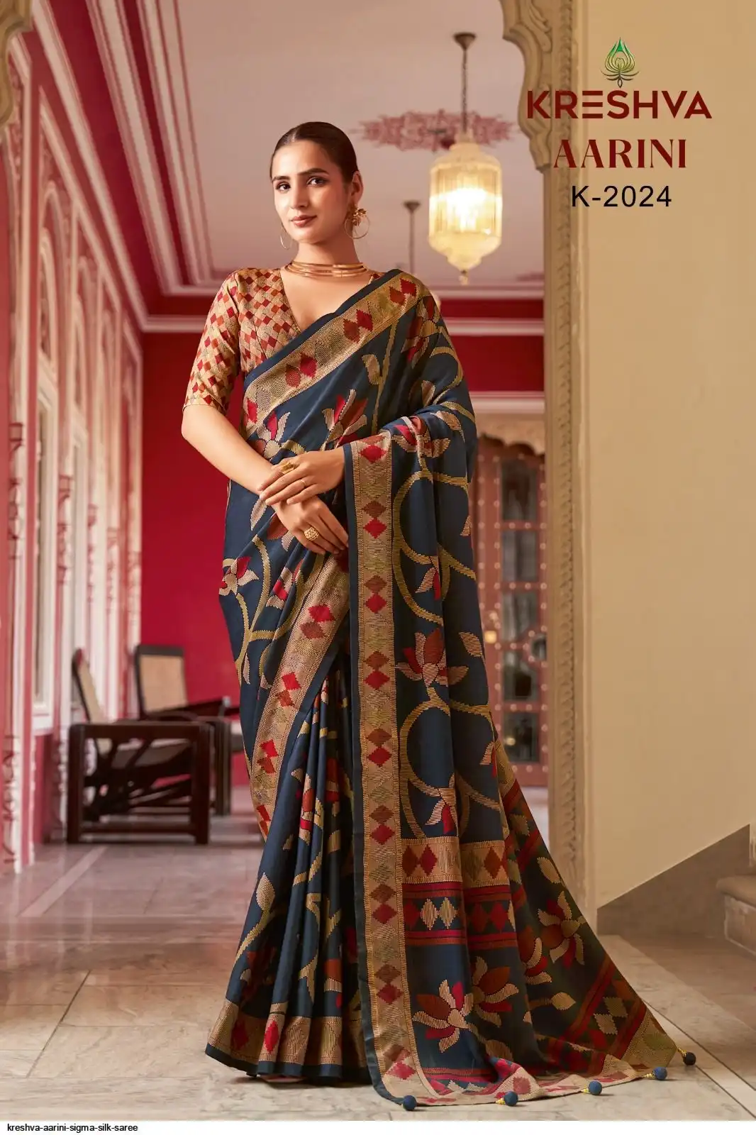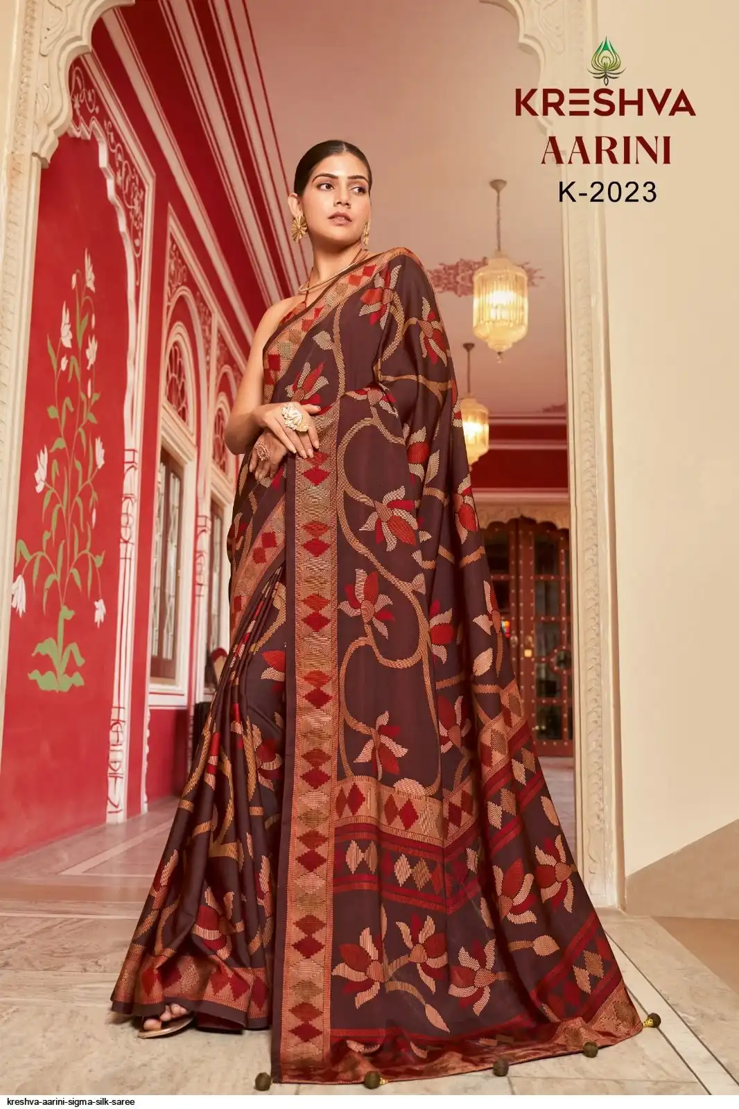 Saree: Charukriti Floral Saree Valentine Sigma Silk With Scuba Finish