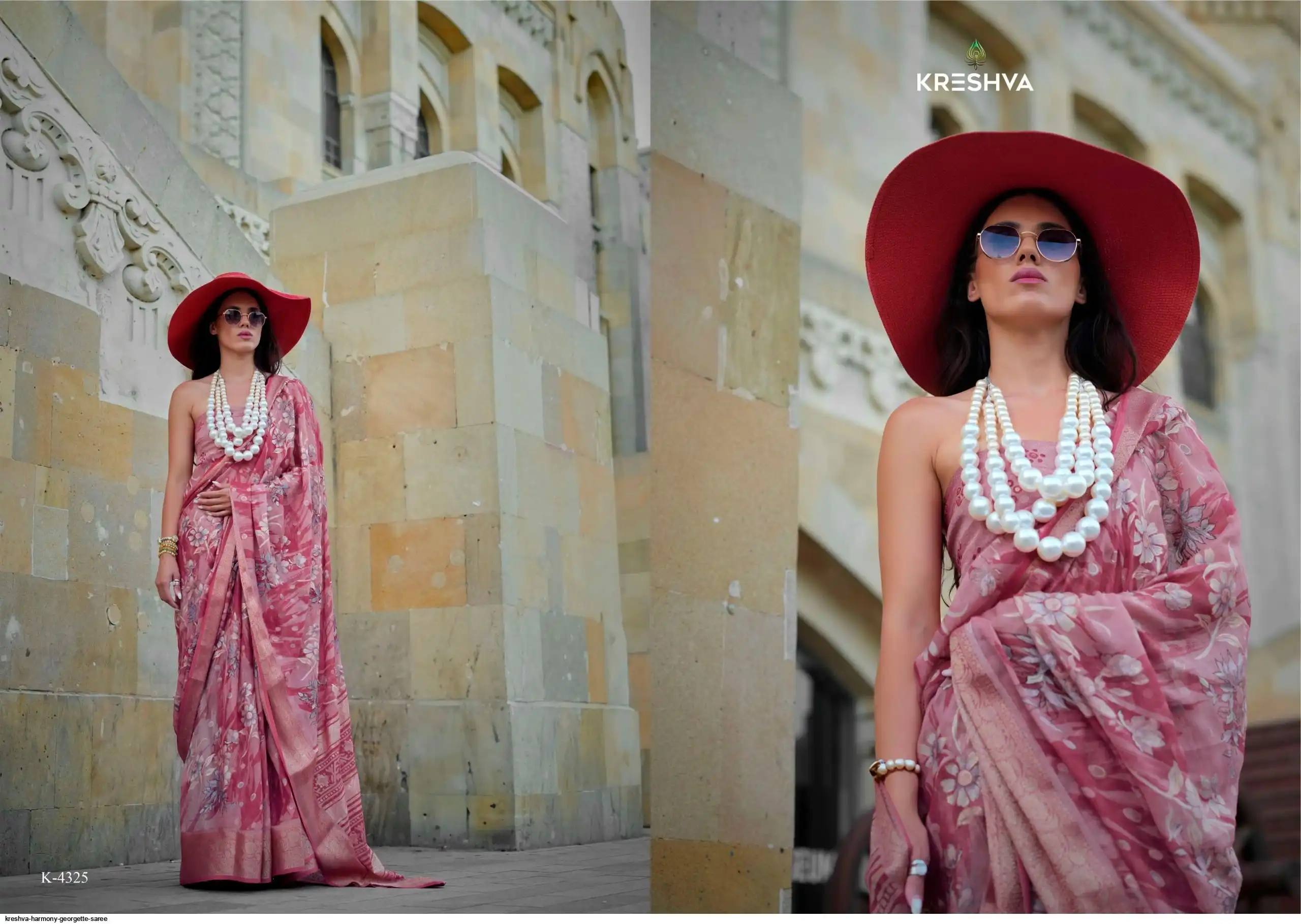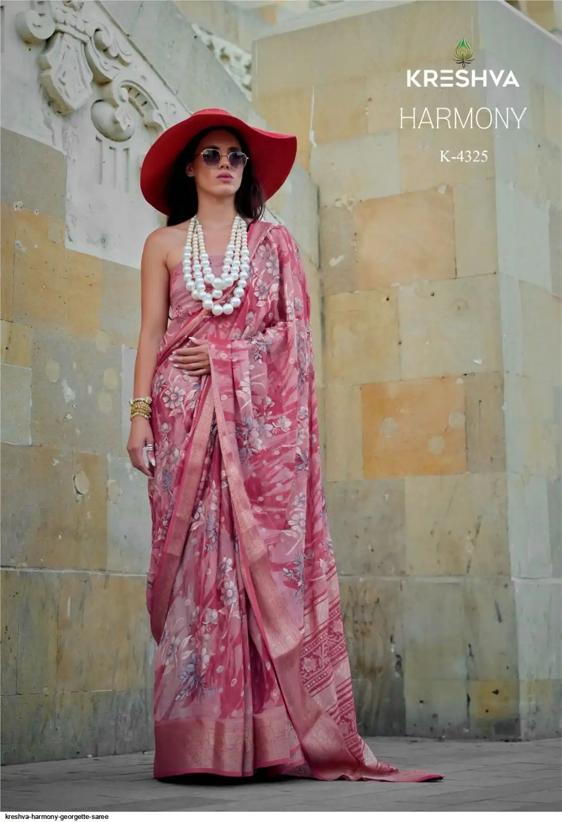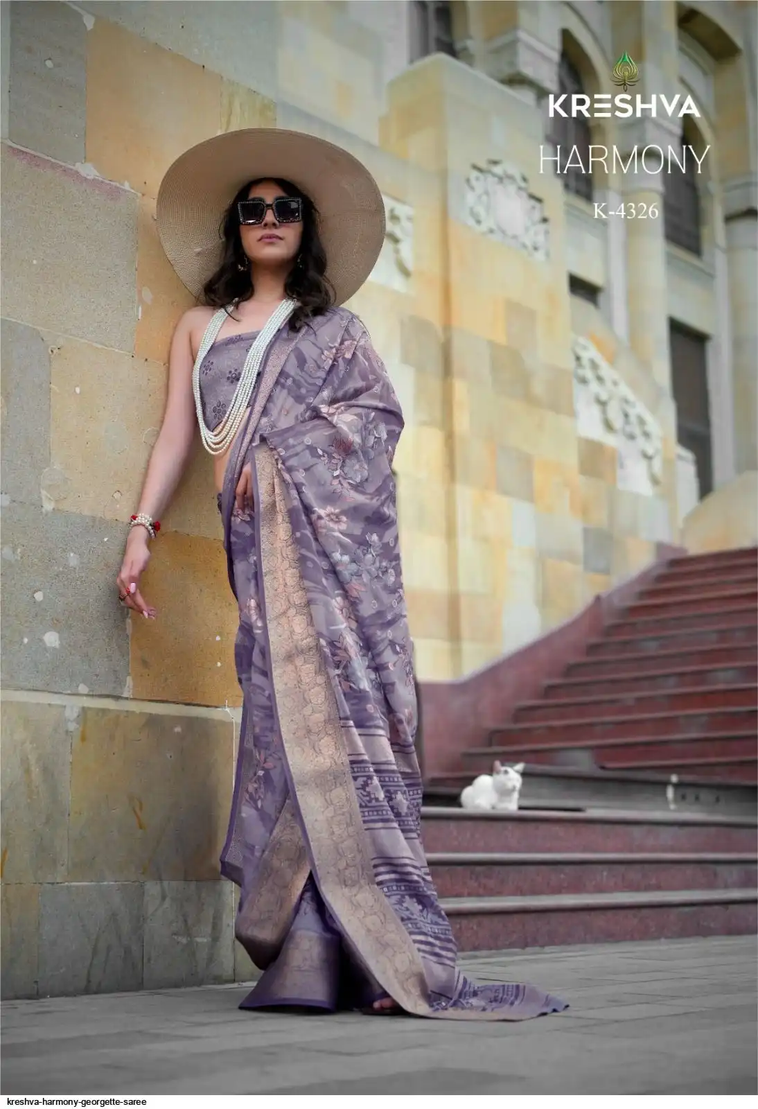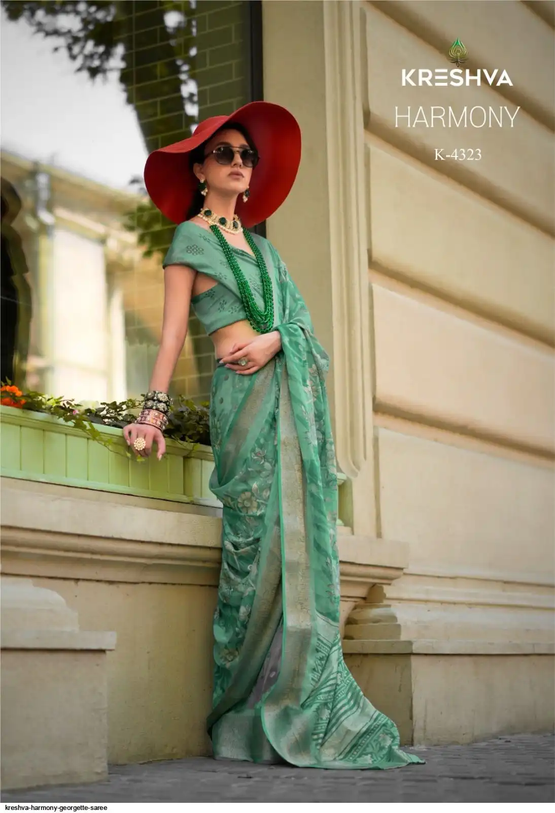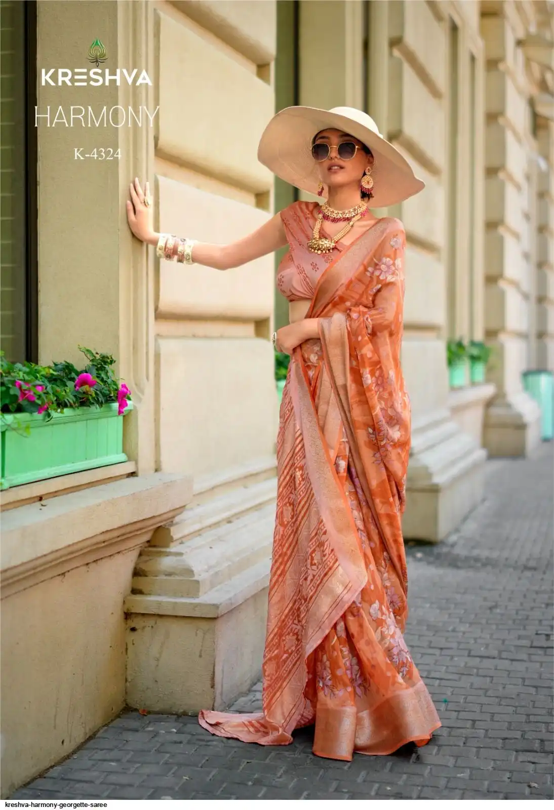 Saree: Lux P.V Georgette With Burnout Fancy Design With Jacquard Border Pallu With Warnish Soft Finish