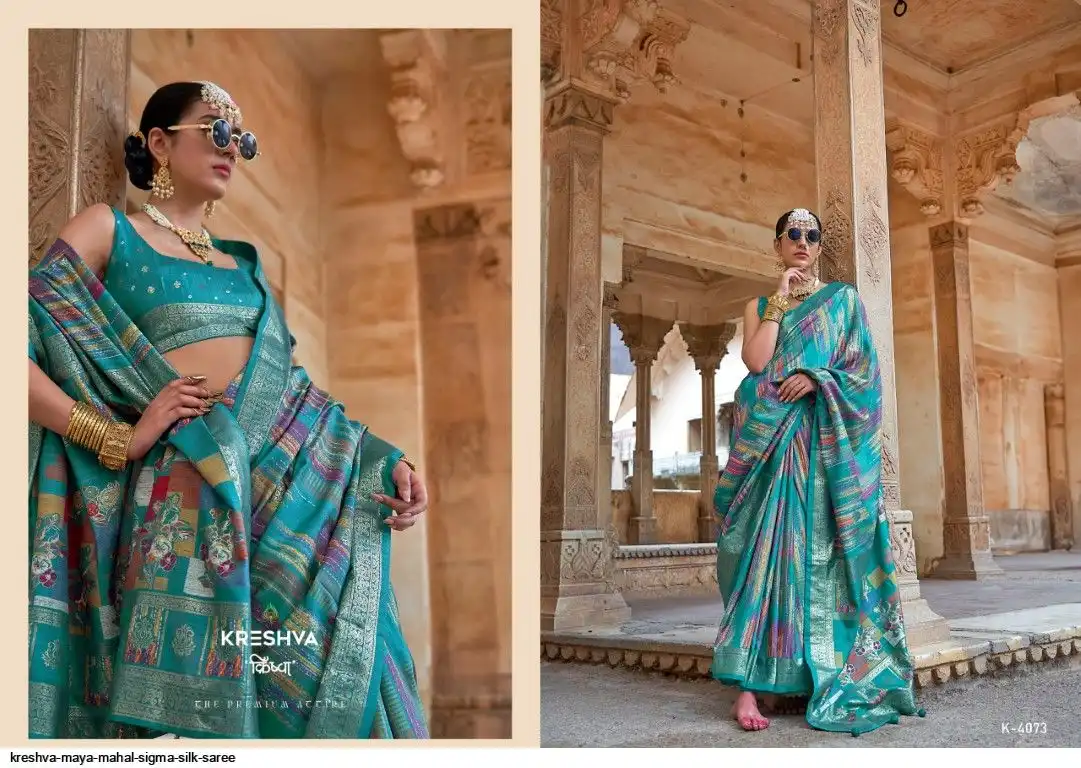 Saree: Mercerizer Sigma Silk Classic Patola Design With Aqua Finish