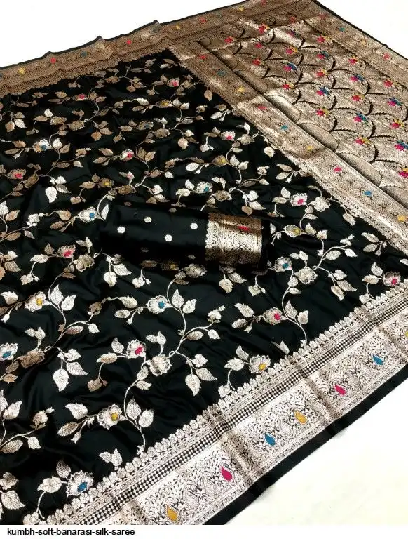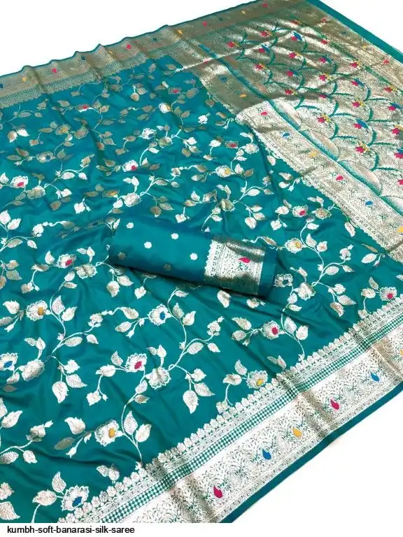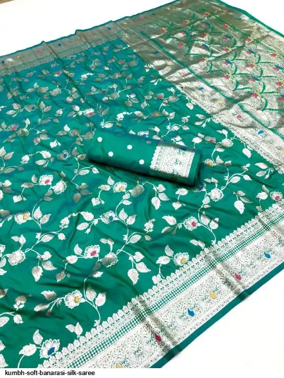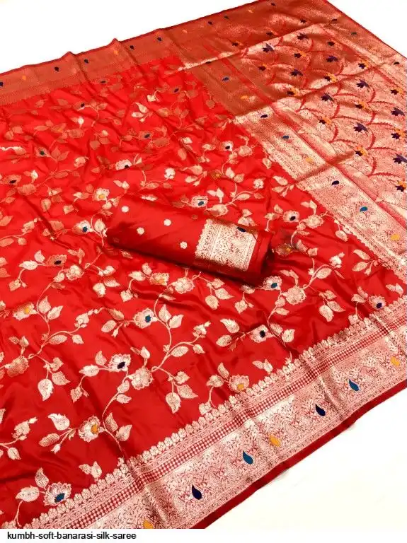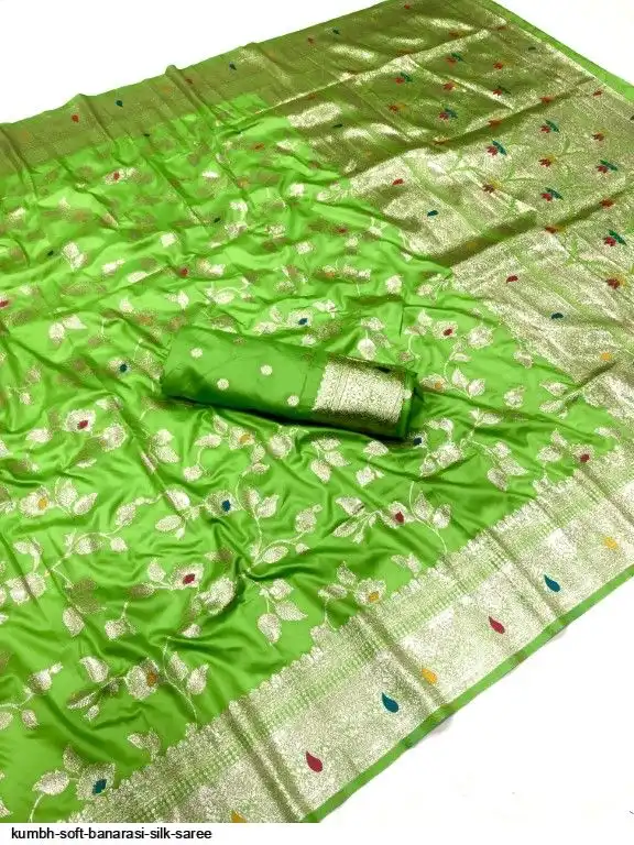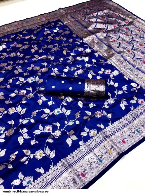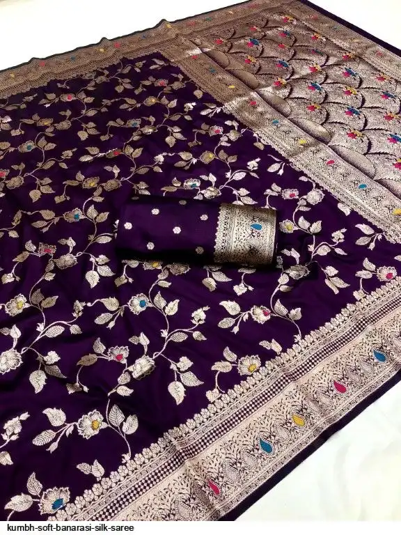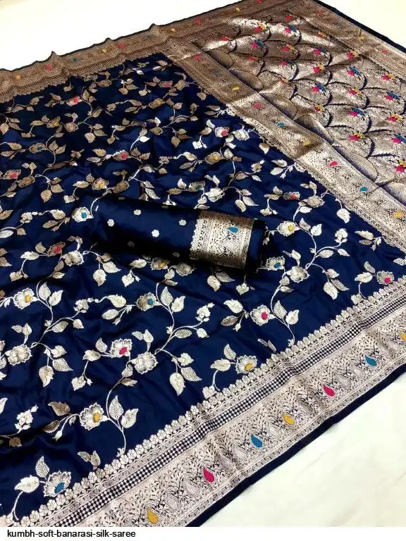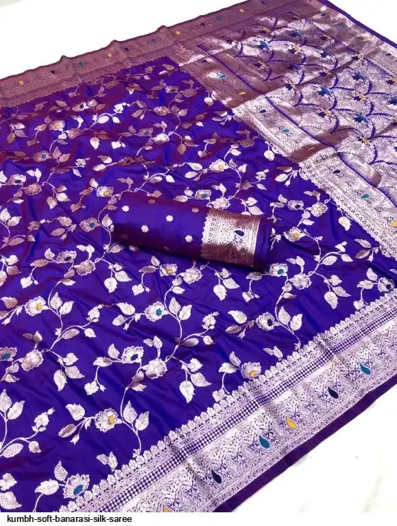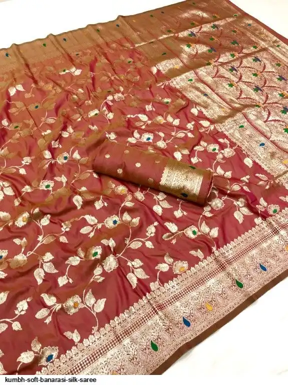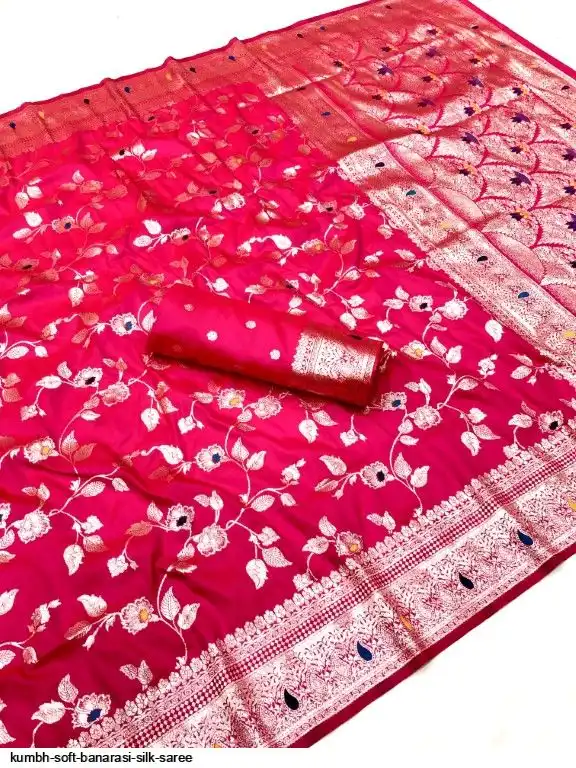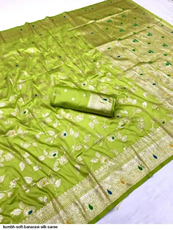 Saree :- Soft Banarasi silk saree with zari weaving Meenakari touchup design all over the saree & Meenakari weawing Rich pallu with Meenakari weawing border & Tassels attached at Pallu End.