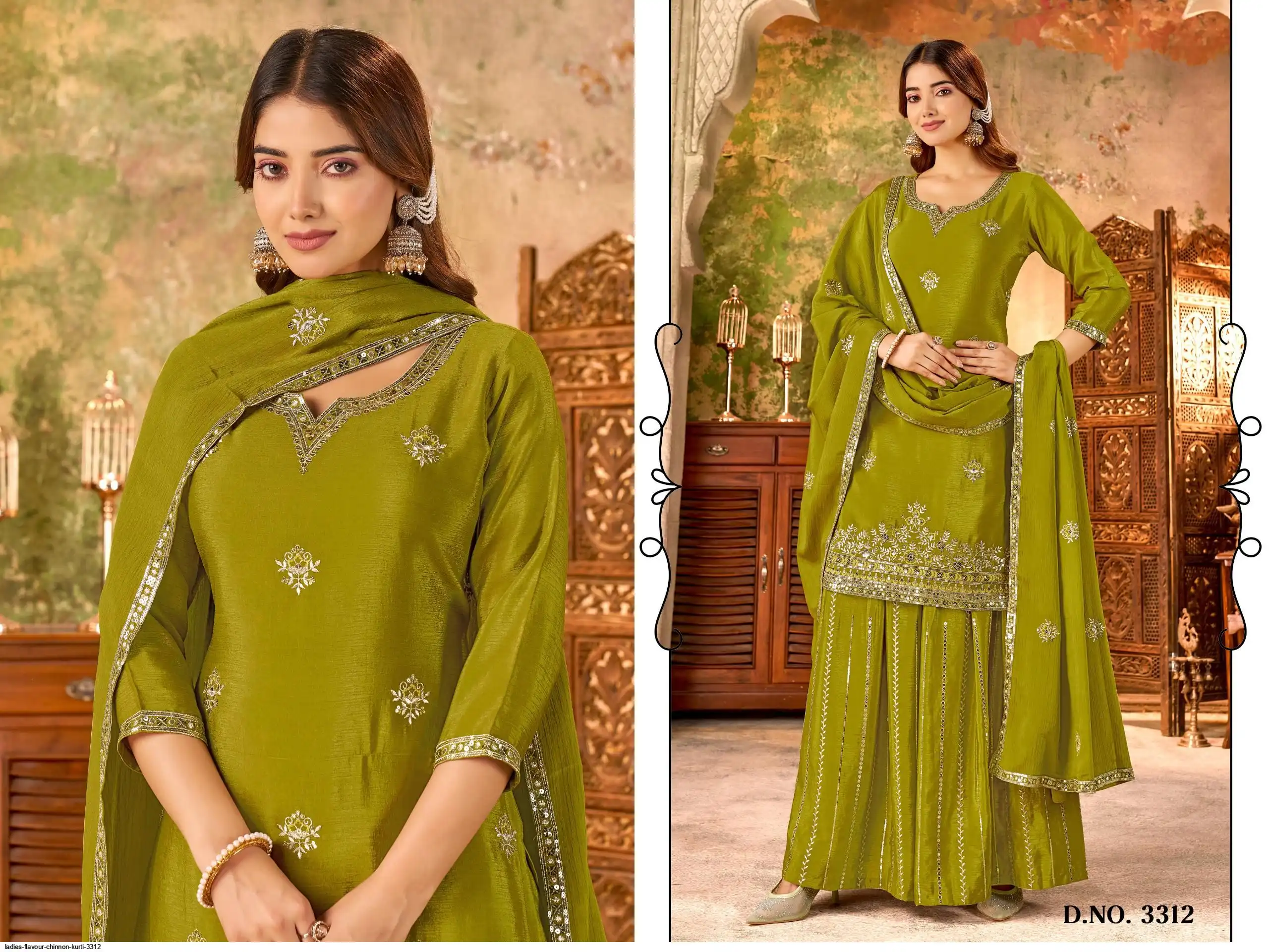 Bottom:- Chinon Heavy Embroidery Work With Inner