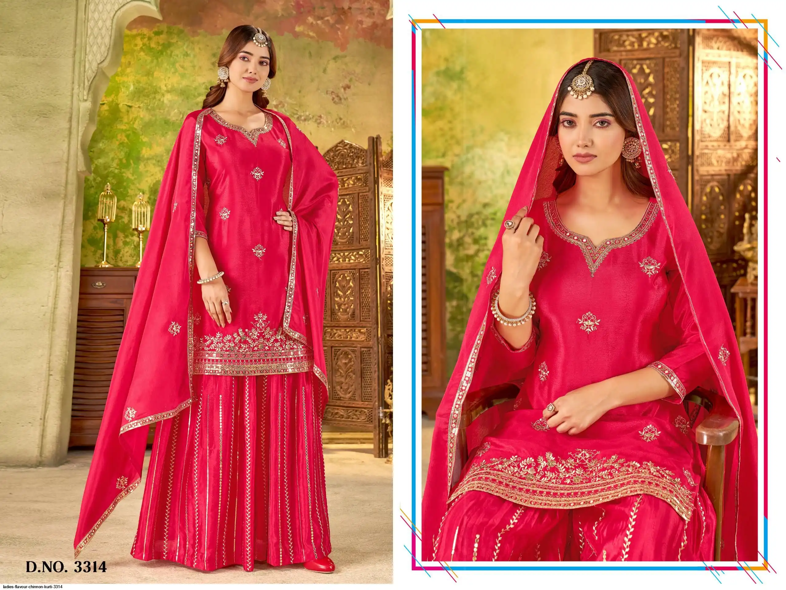 Bottom:- Chinon Heavy Embroidery Work With Inner