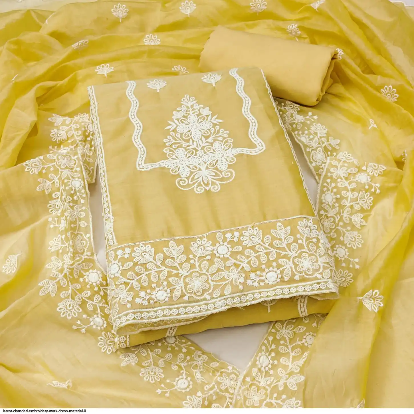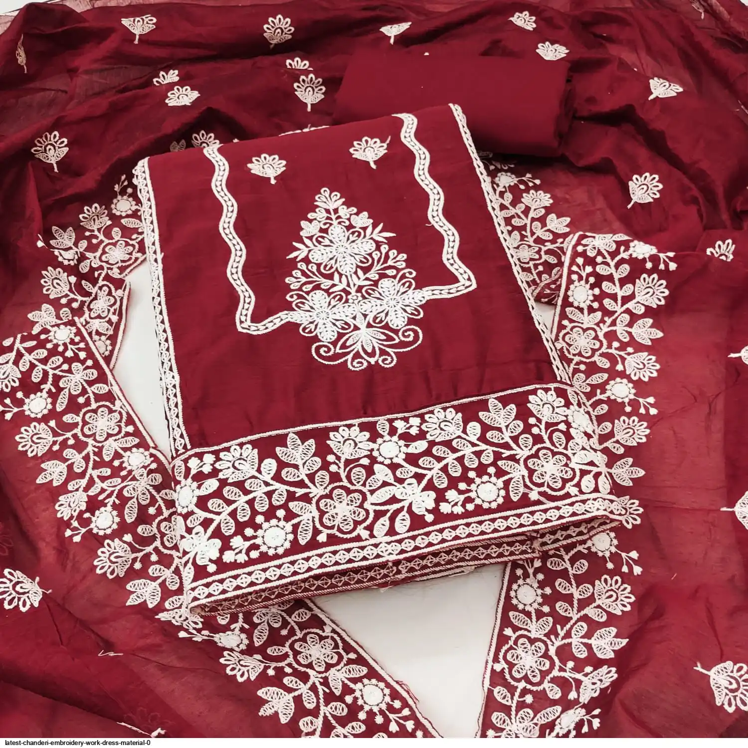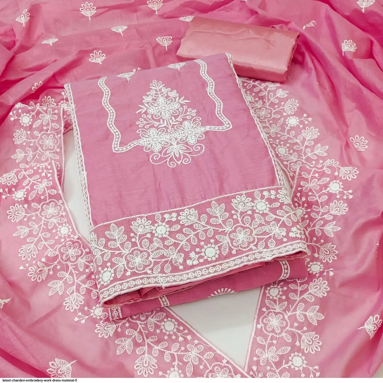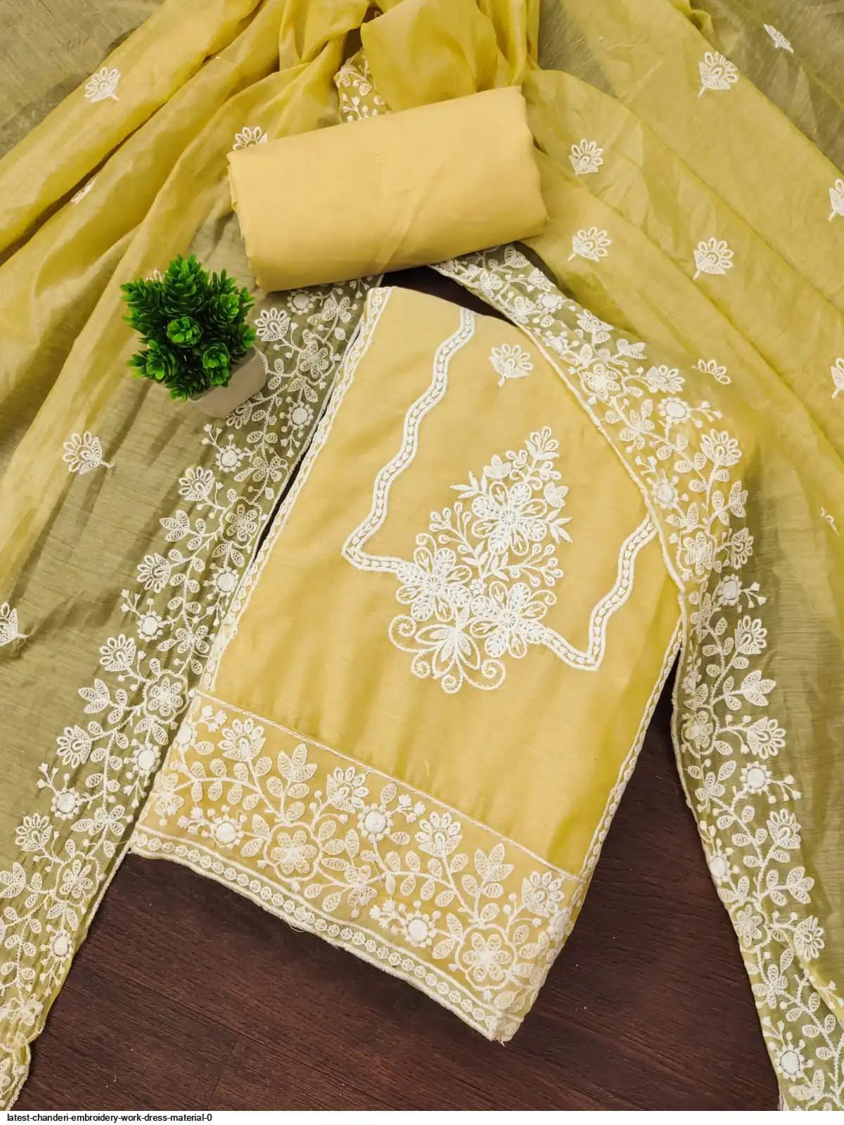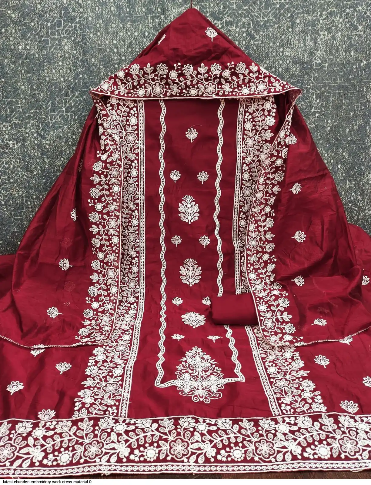 Top : HEAVY CHANDERI NECK EMBROIDERY  WORK 1.9 MTS