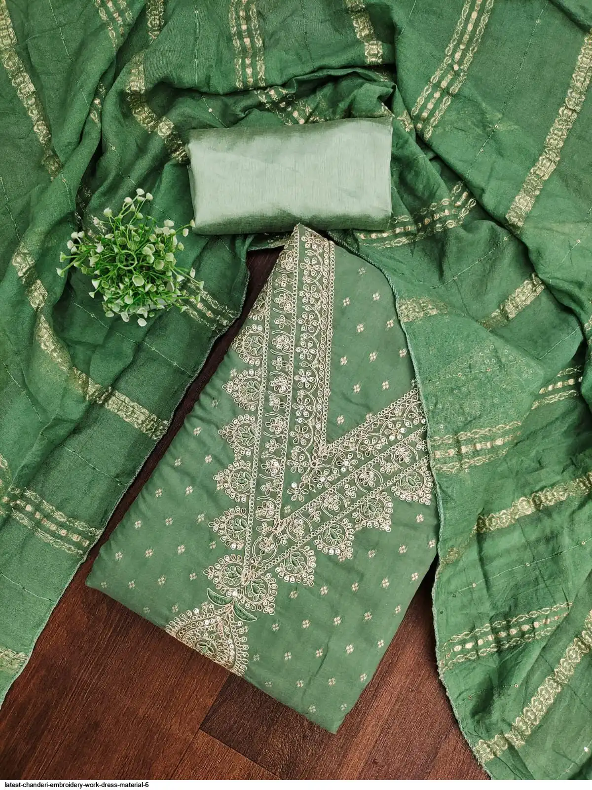 Top- CHANDERI BUTTI EMBROIDERY CODIND WORK (1.9 MTR )
