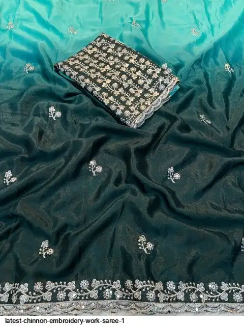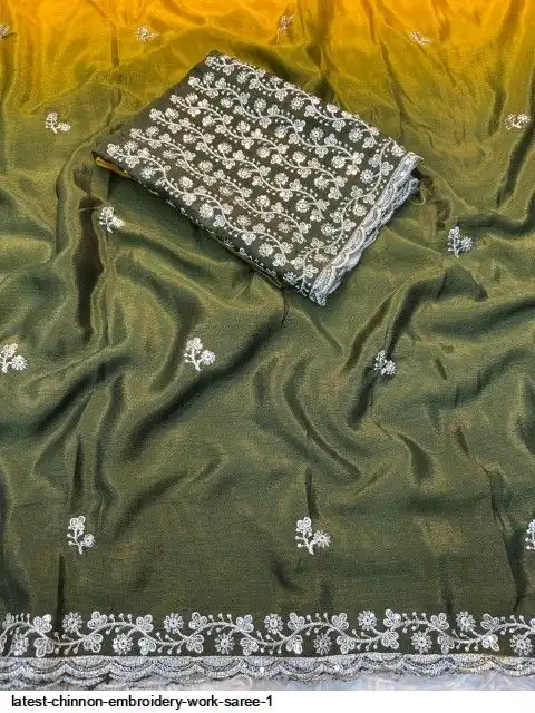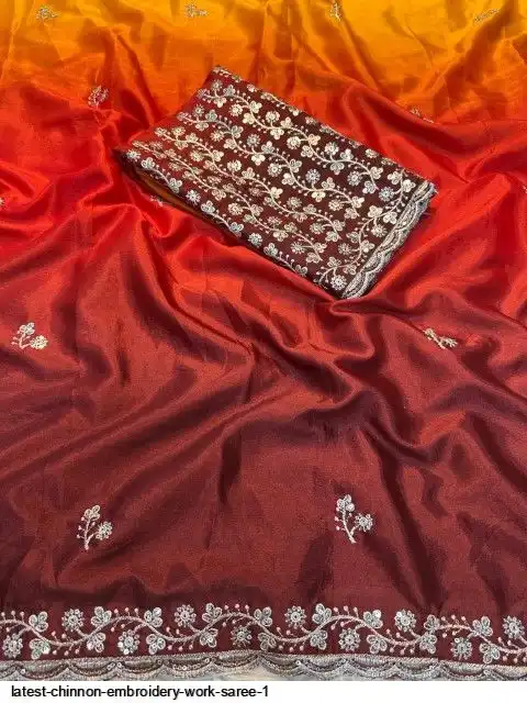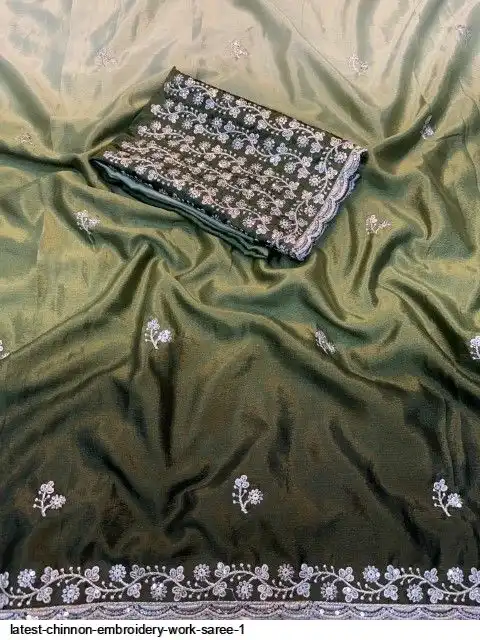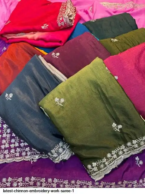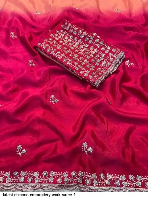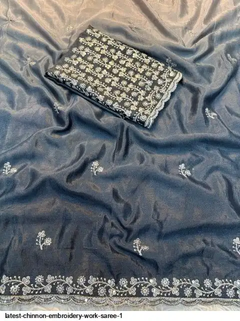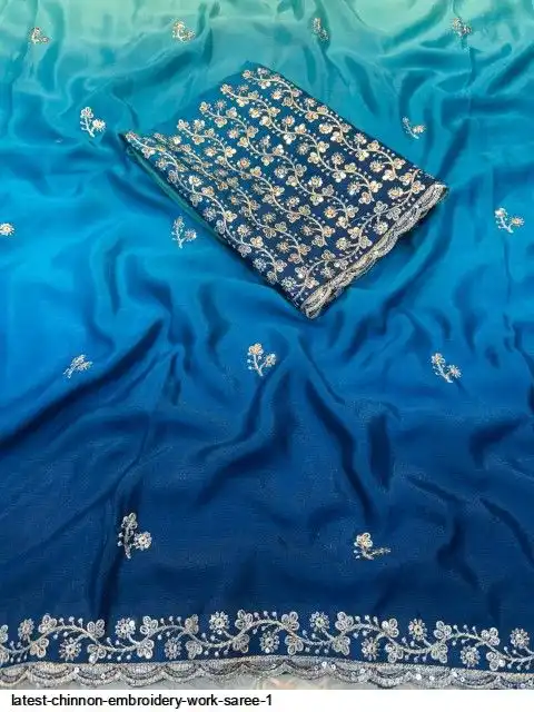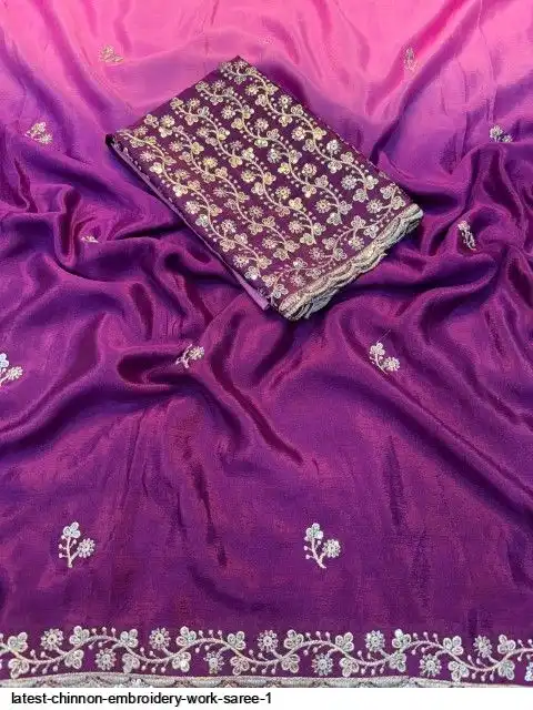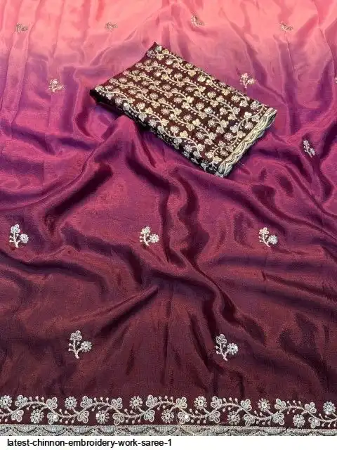 Peding Chinnon Saree With Fancy Embroderiy Work Butta in All Over Saree & Fancy Embroderiy Work Border Embroderiy Blouse