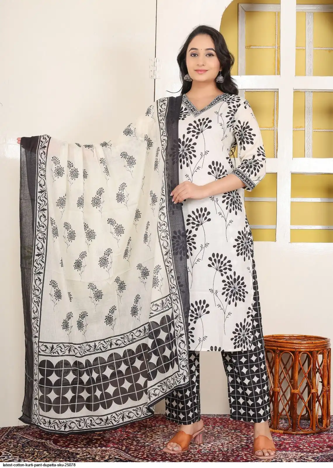 LATEST COTTON KURTI PANT DUPATTA SKU 25078