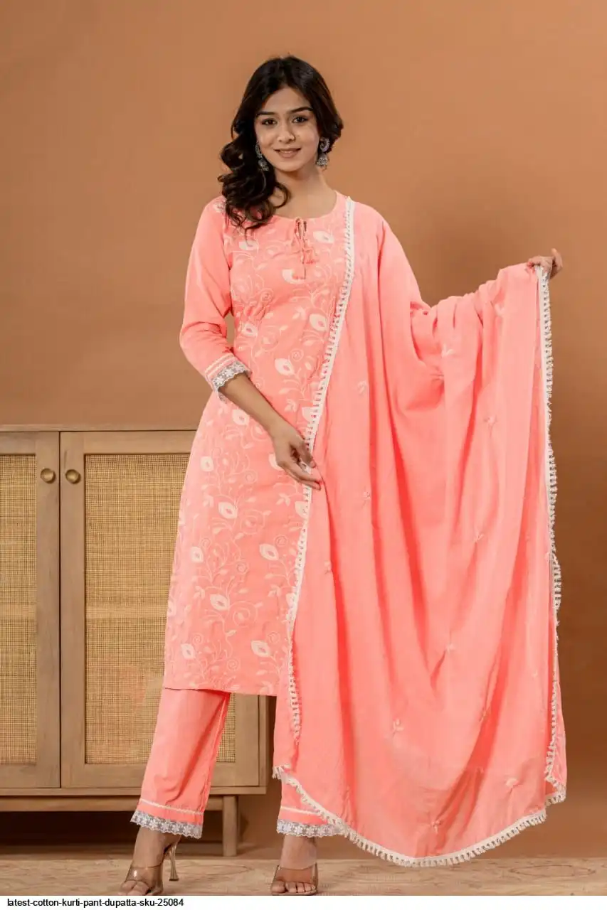 LATEST COTTON KURTI PANT DUPATTA SKU 25084