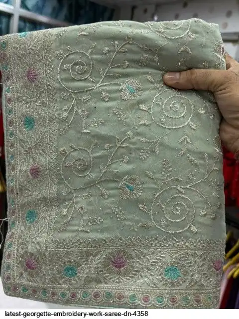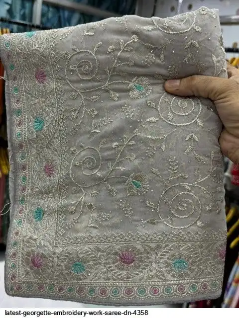 Work :- Full Heavy Silver Zari & Multicoloured Zari Embroidery Work With Stone Work.