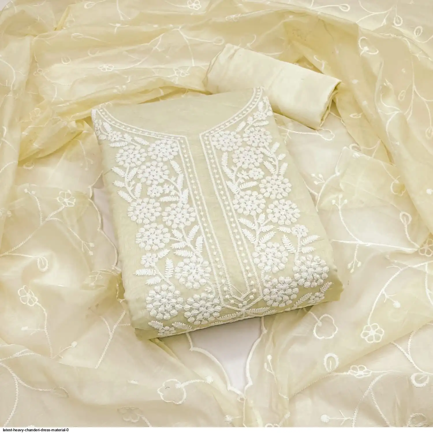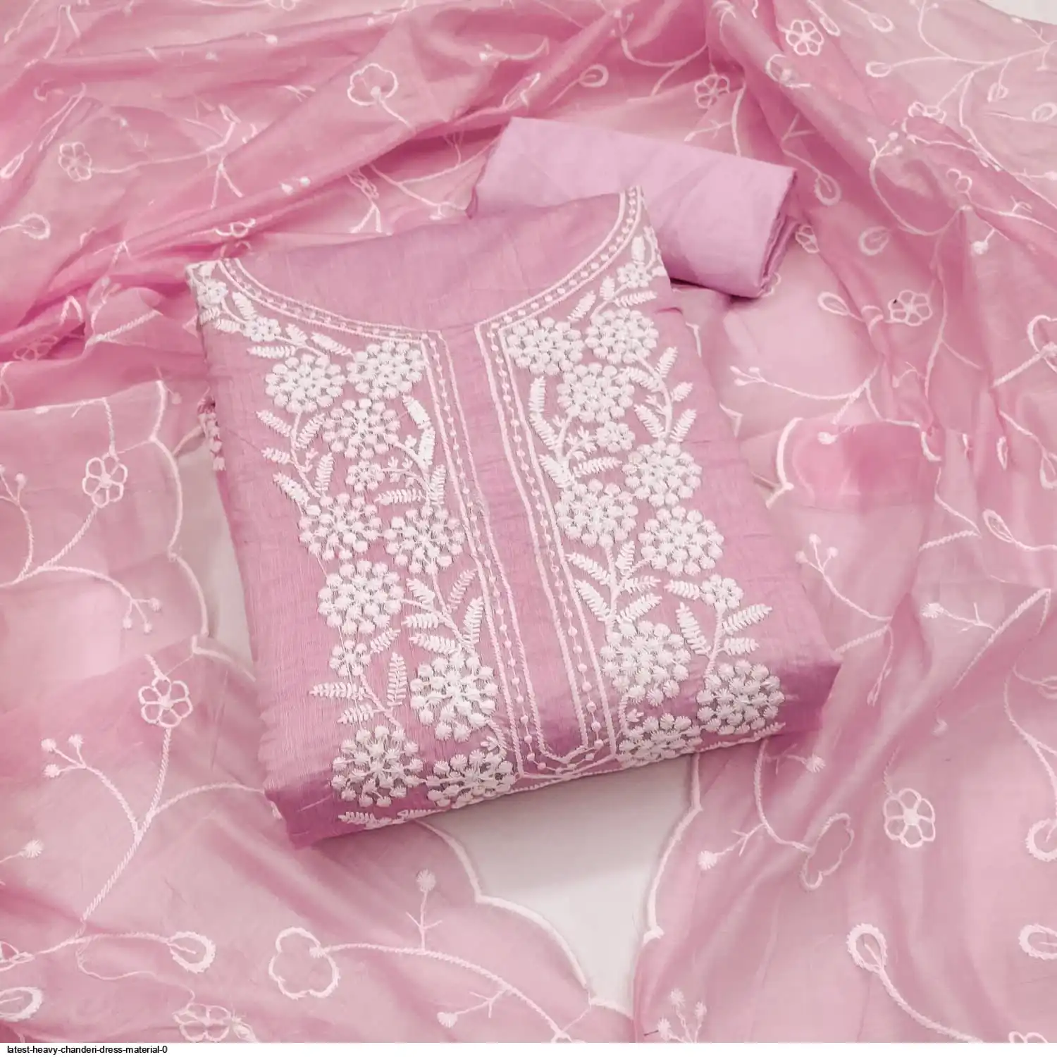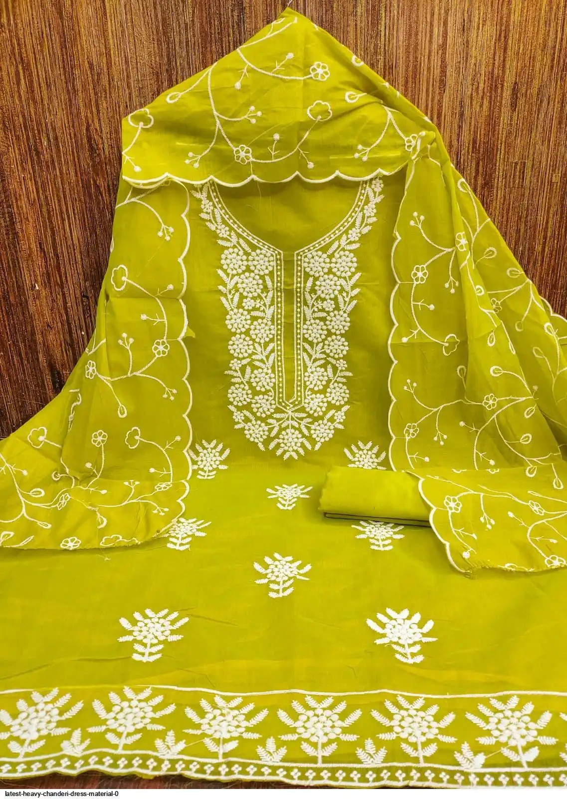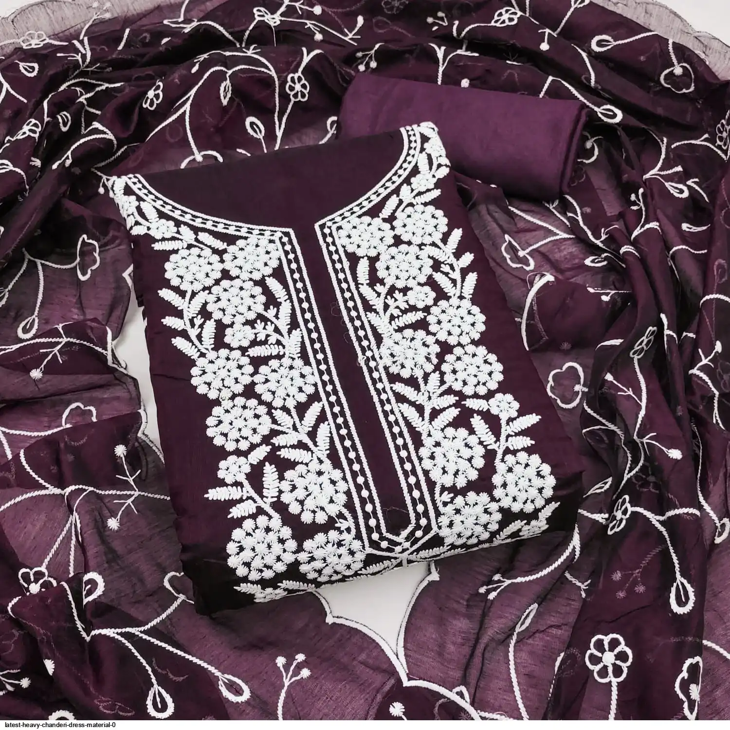 Top : HEAVY CHANDERI NECK EMBROIDERY  WORK 1.9 MTS